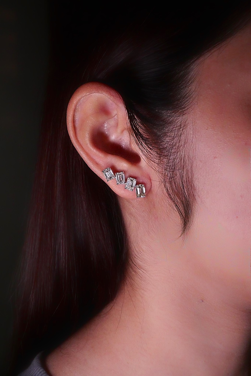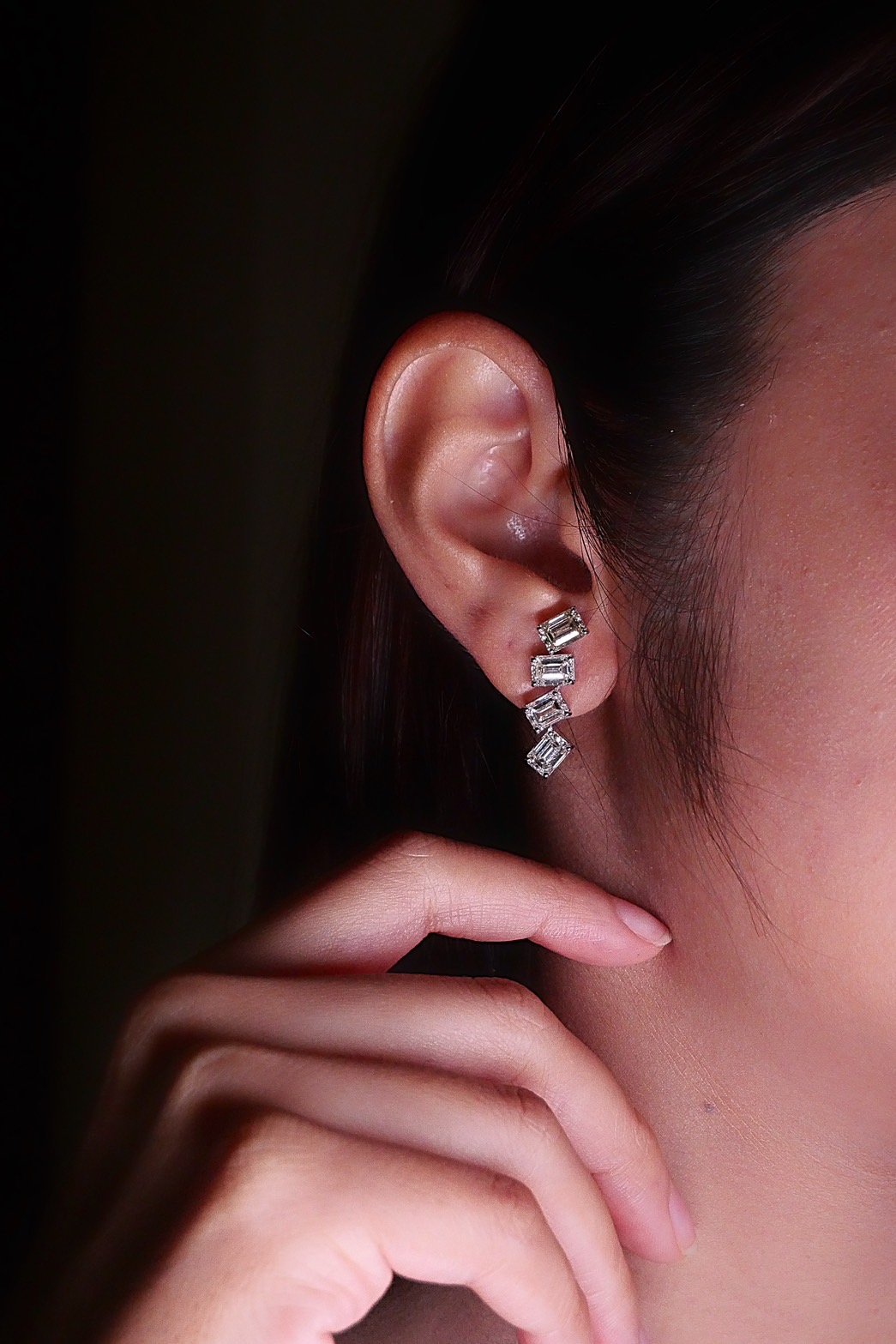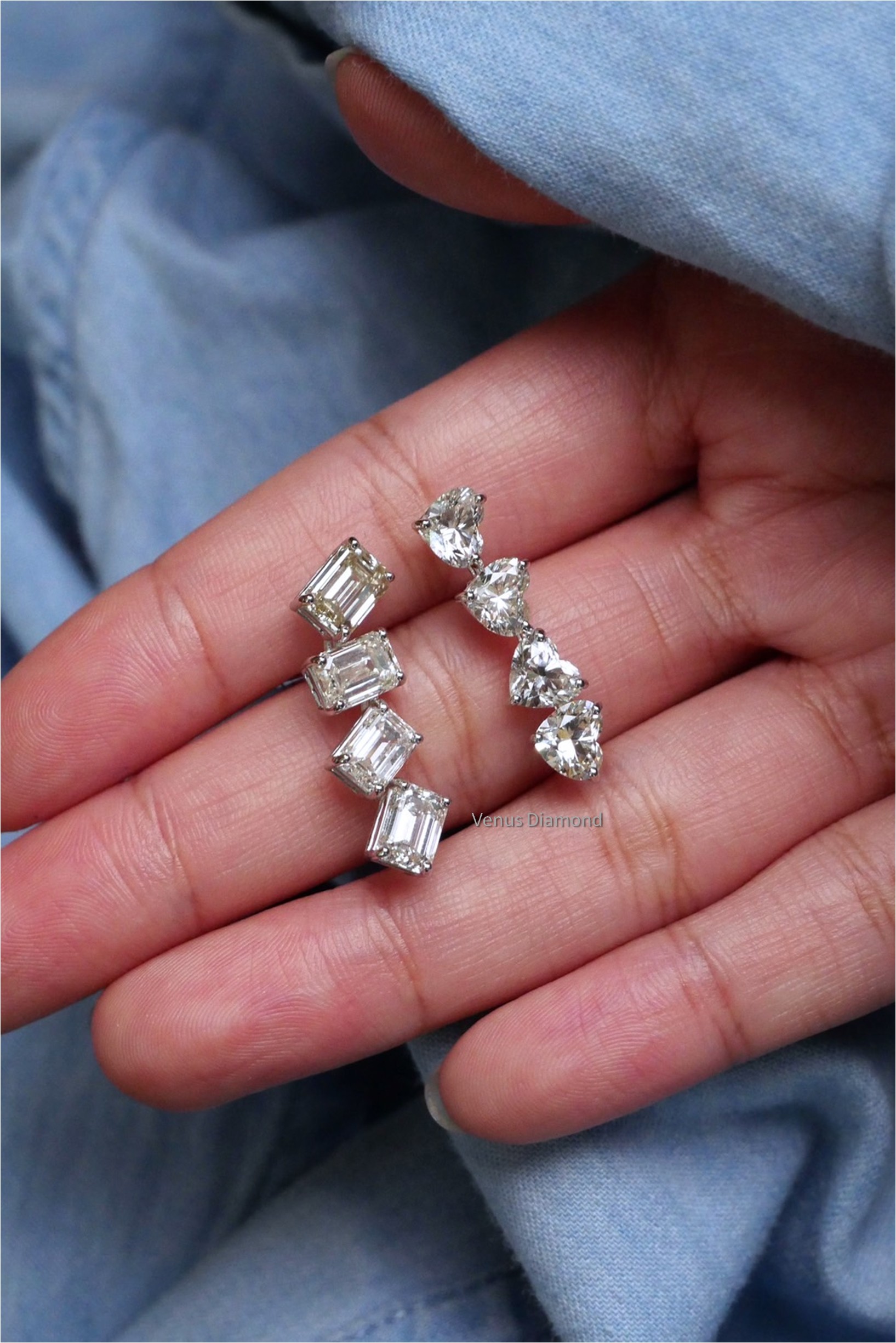 ต่างหูเพชร Emerald 4 pcs 3.83 ct และ Heart 4 pcs 2.84 ct สี I ความสะอาด VS