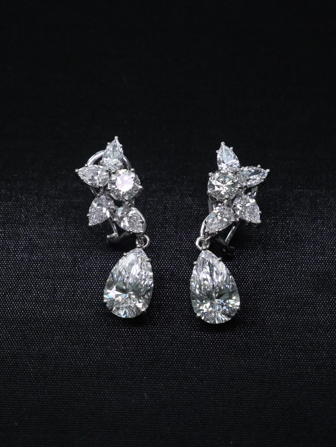 รายละเอียด: ต่างหู Pear 4.02 ct สี F ความสะอาด VS1 2VG SL HRD 250000200775 Pear 4.02 ct สี F ความสะอาด VS1 2X N HRD 250000200772