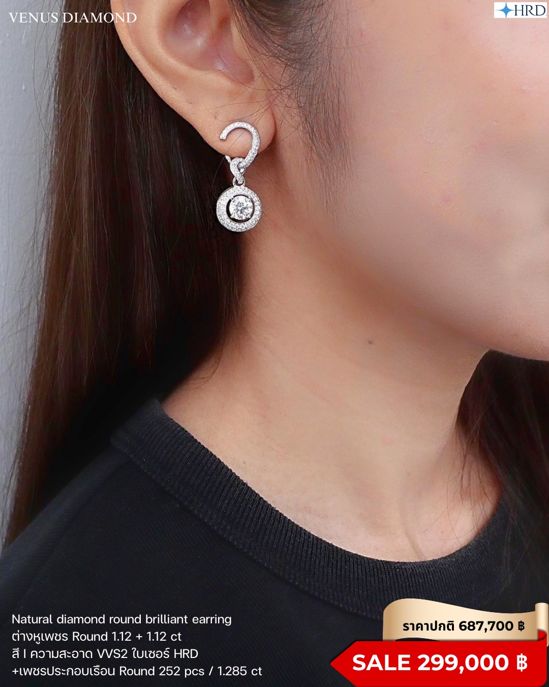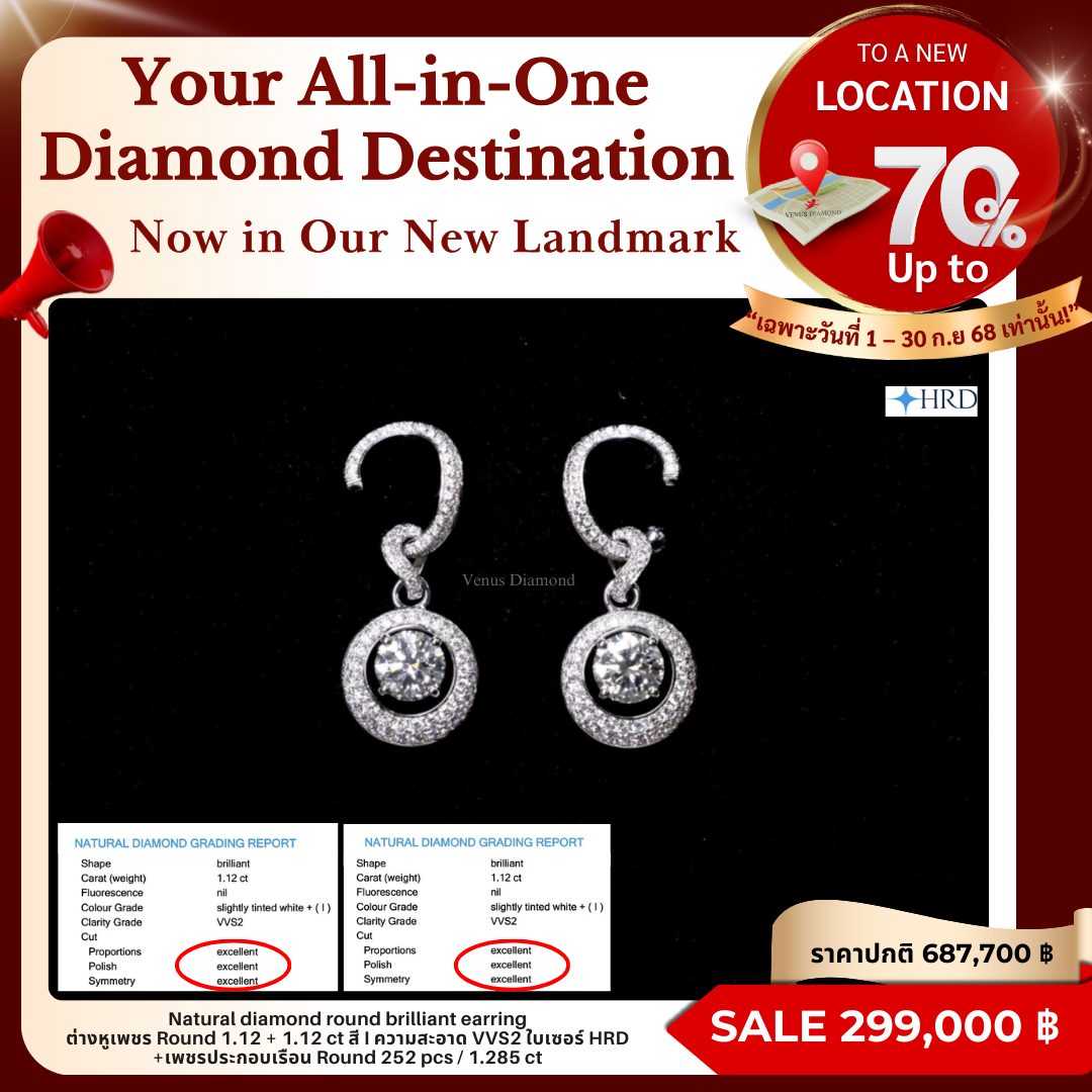 Round 1.12 ct สี I ความสะอาด VVS2 3X N HRD 240000015862 Round 1.12 ct สี I ความสะอาด VVS2 3X N HRD 240000110809 เพชรประกอบตัวเรือน Round 22/0.262 CT Round 16/0.148 CT Round 20/0.147 CT Round 152/0.578 CT Round 42/0.150 CT น้ำหนักเพชรเล็กรวม 252 pcs 1.285 ct White gold 18k. 9.88 g.
