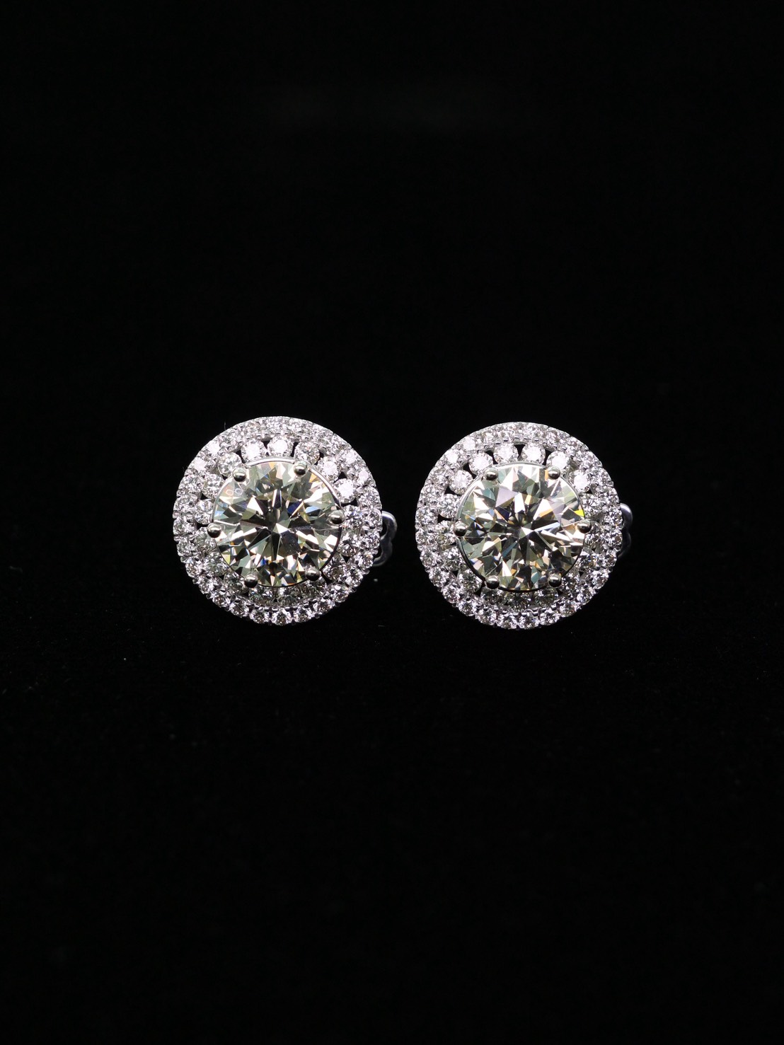ต่างหูเพชร Round 2.02 ct + 2.05 ct สี K ความสะอาด VVS1 GIL