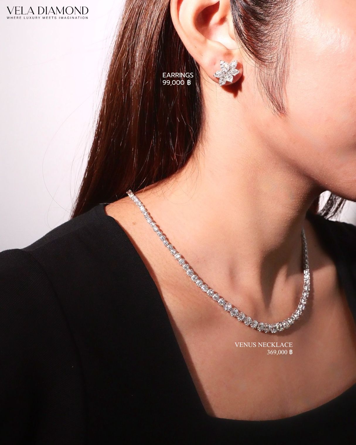 💡 Styling Tip: สวมคู่กับ สร้อยคอเพชรกลมไล่ไซส์ Venus Diamond