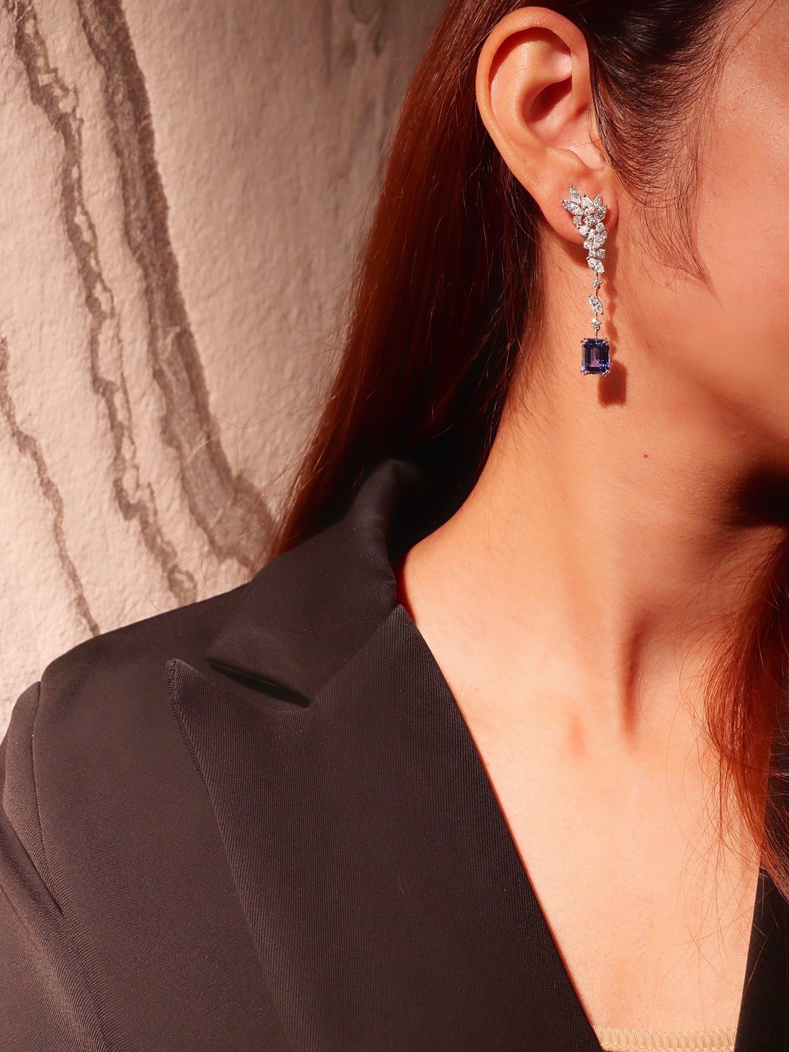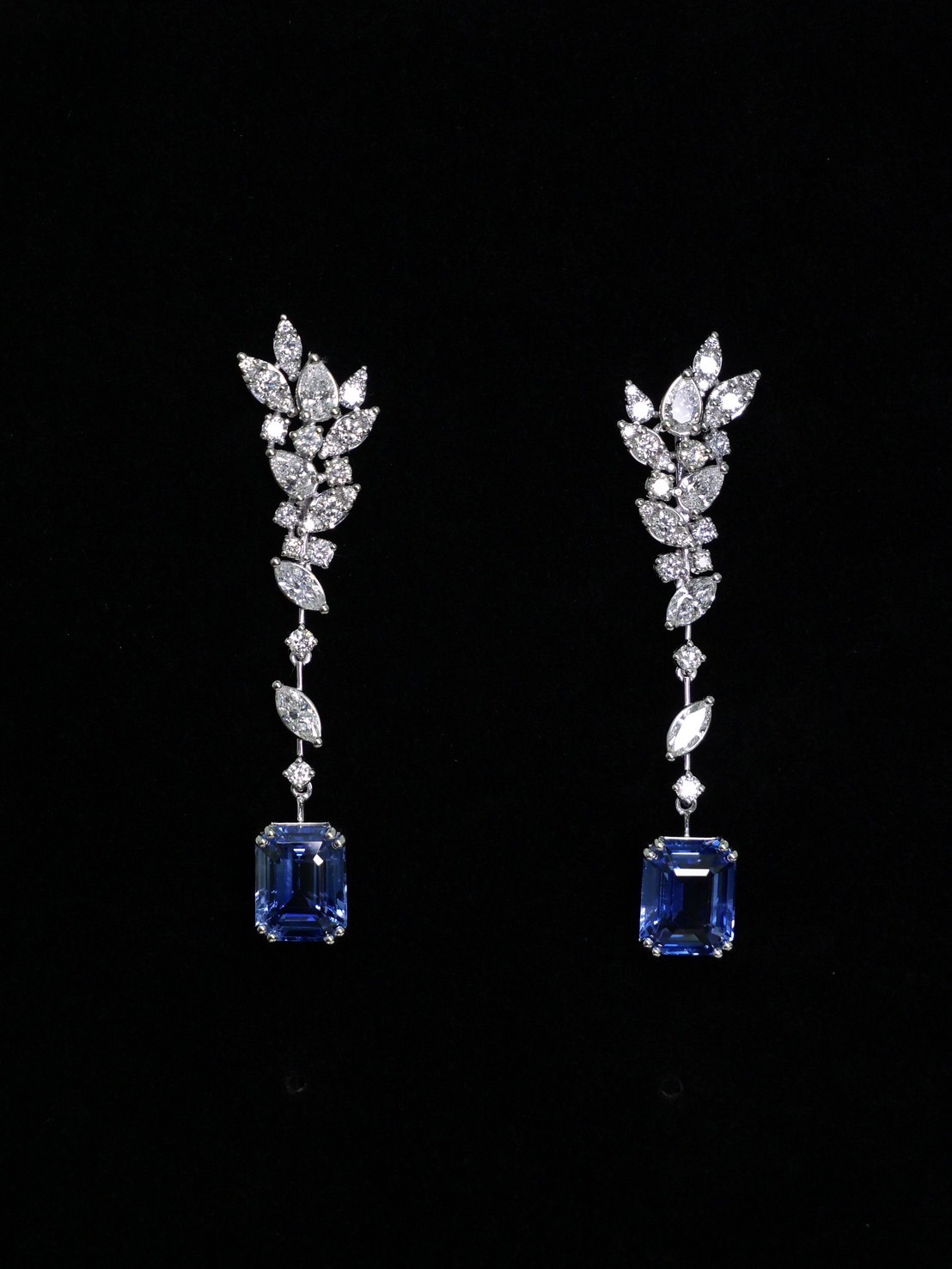 ต่างหู Sapphire 4.24ct Royal Blue Srilanka (Ceylon) Sapphire 4.33 ct Royal Blue Srilanka (Ceylon) Marquise 4 pcs 0.65 ct Round 44 pcs 1.22 ct white gold 18k. 10.48 g.