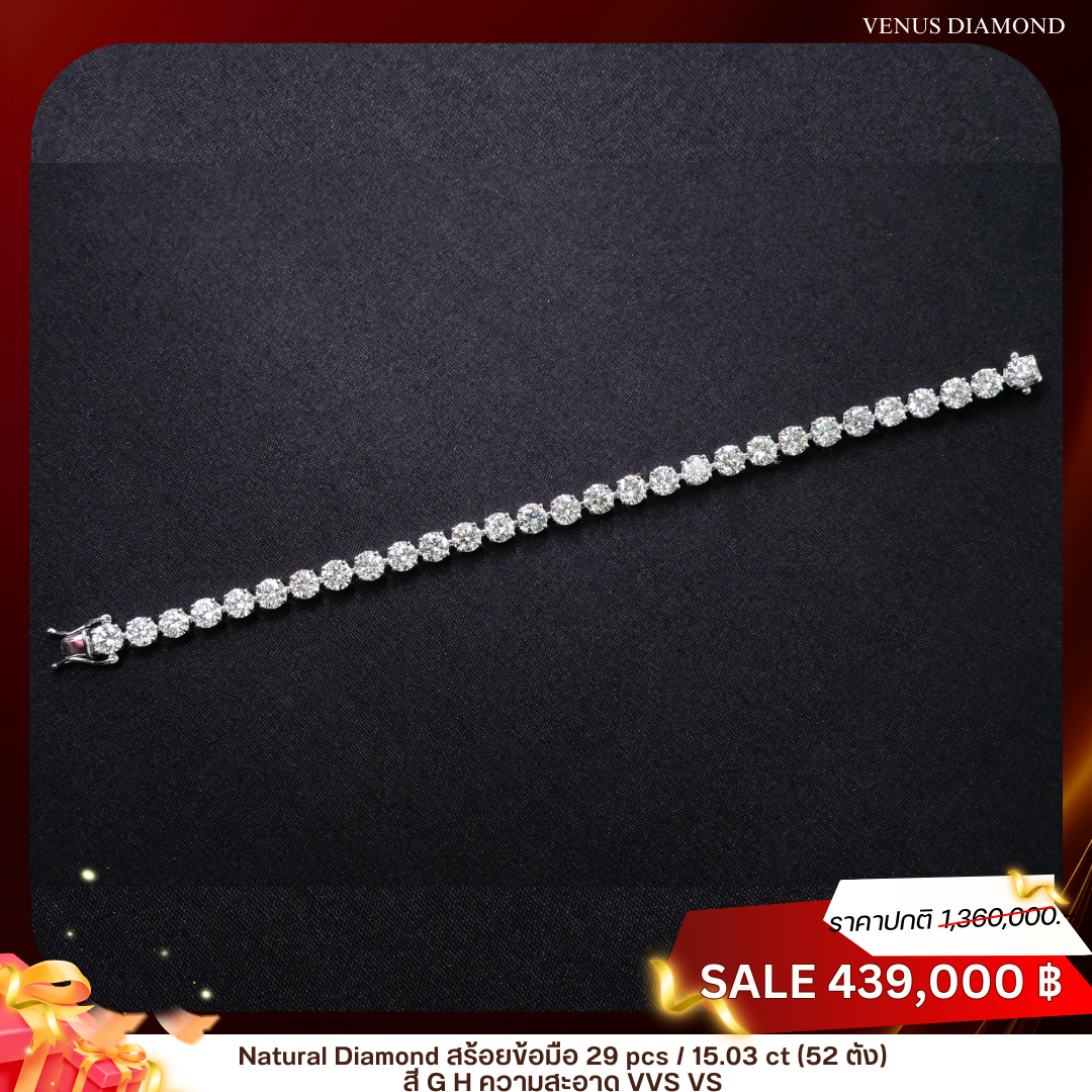 สร้อยข้อมือเพชร Diamond 29 pcs 15.03 ct สี G-H ความสะอาด VVS VS GIL