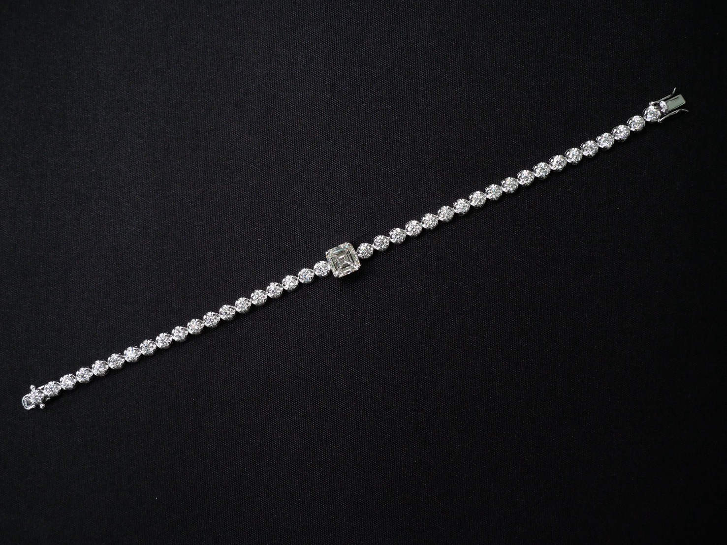 สร้อยข้อมือเพชร Asscher 2.67 ct สี I ความสะอาด VVS1 1X1VG N HRD 200000011354 Round 38 pcs 3.54 ct whitr gold 18k. 9.58 g.