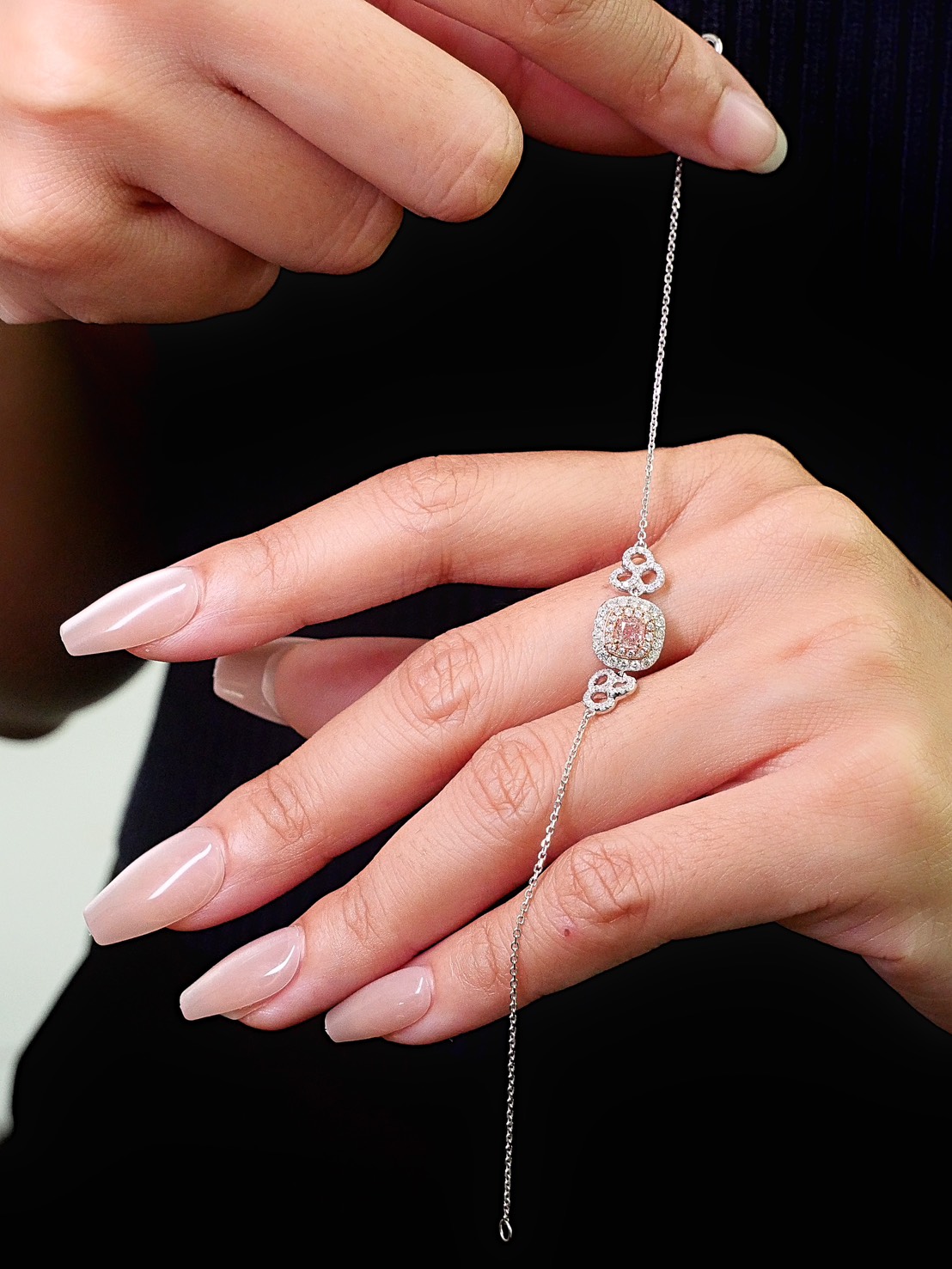 สร้อยข้อมือเพชร Cushion 0.34 ct Light Pinkish Brown SI1 2G F GIA 6224303755 Diamond 0.33 ct Gold 2.48 g.