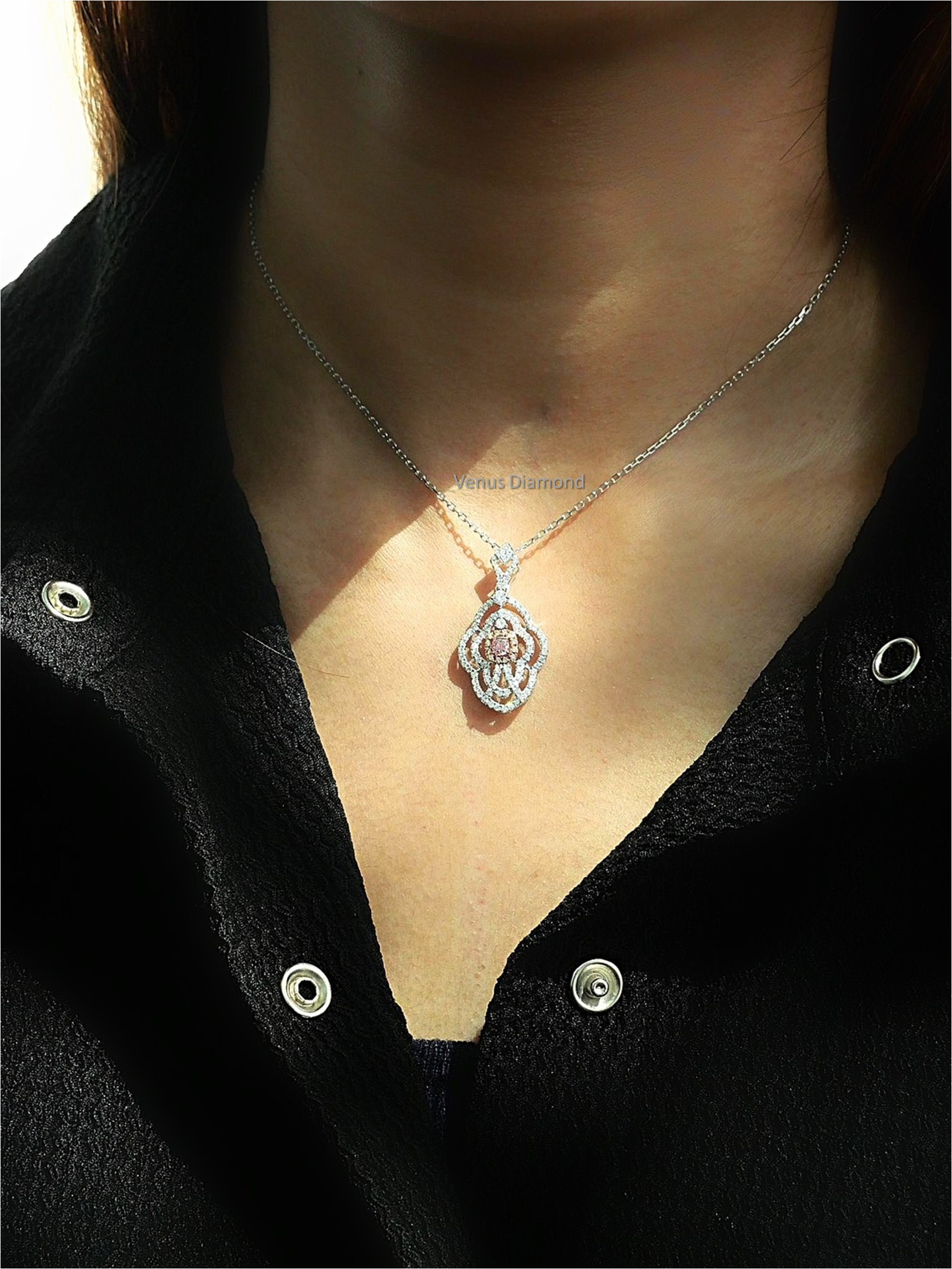 สร้อยคอเพชร Cushion 0.19 ct Fancy Light Brown-Pink SI1 1VG1G N GIA 6224591266 Round 0.53 ct white gold 18k. 4.54 g.