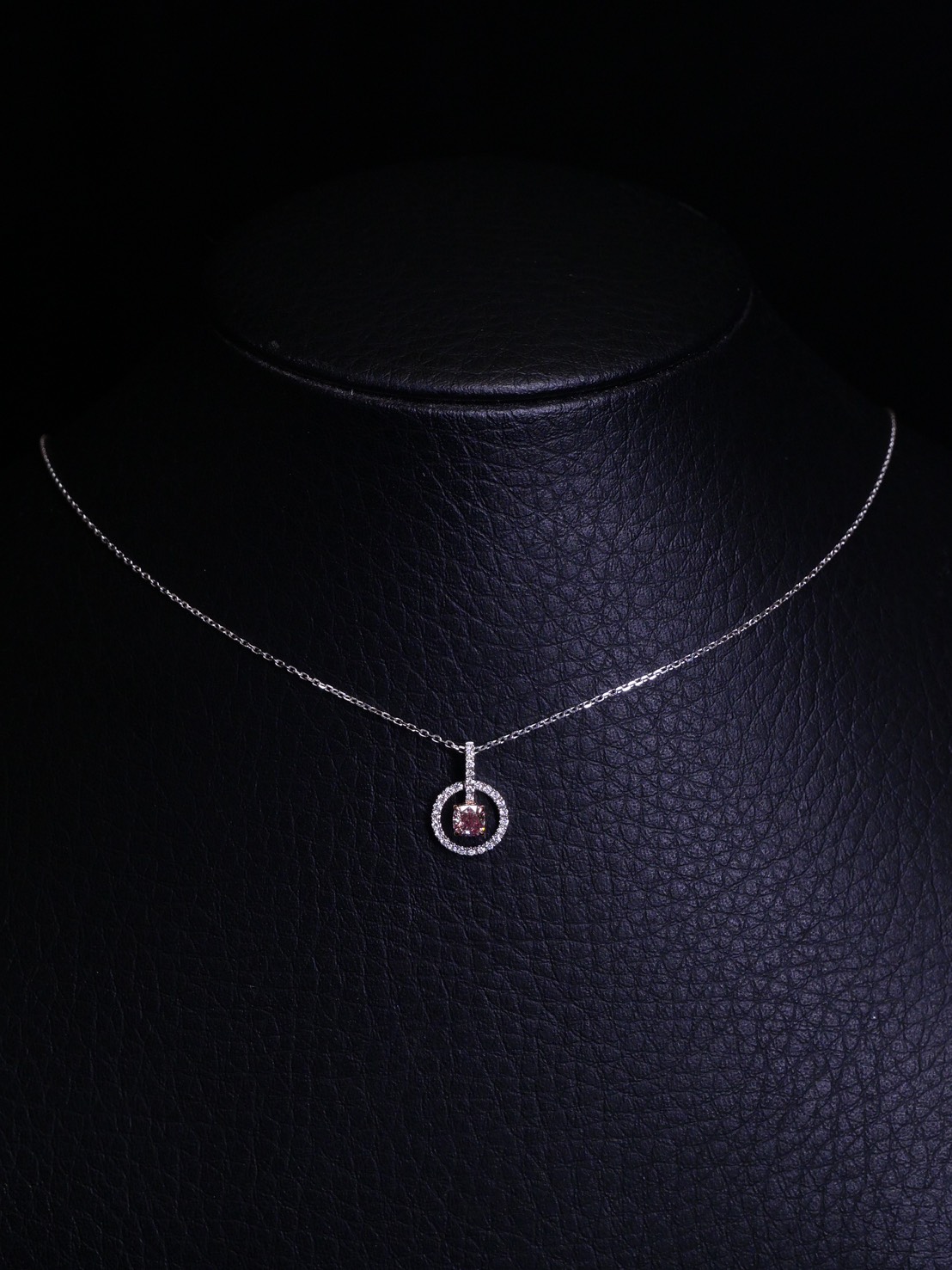 สร้อยคอเพชร Cushion 0.36 ct สี Fancy Pinkish Brown I1 2G N GIA 5221304476 Round 0.11 ct white gold 1.88 g.