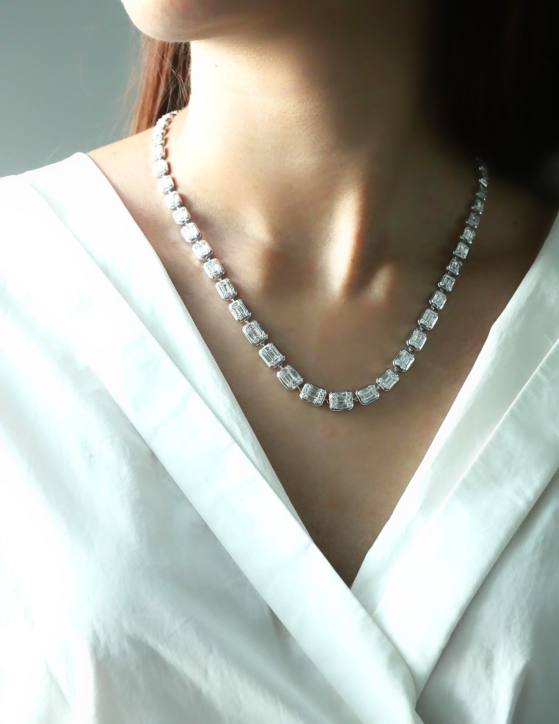 💫 ราคาเริ่มต้นเพียง 399,000 – 599,000 บาท เฉพาะ 10.10 นี้เท่านั้น! ..... เส้นแรก 💎✨ Timeless Elegance – Natural Diamond Necklace ✨💎 . 💎สร้อยคอเพชรแท้ดีไซน์ ประกบเพชรเม็ดโตรูปทรง Emerald Cut แบบคลาสสิก ประดับเพชรอย่างประณีตสุดหรู เด่นประกายระยิบระยับทุกองศา ✨