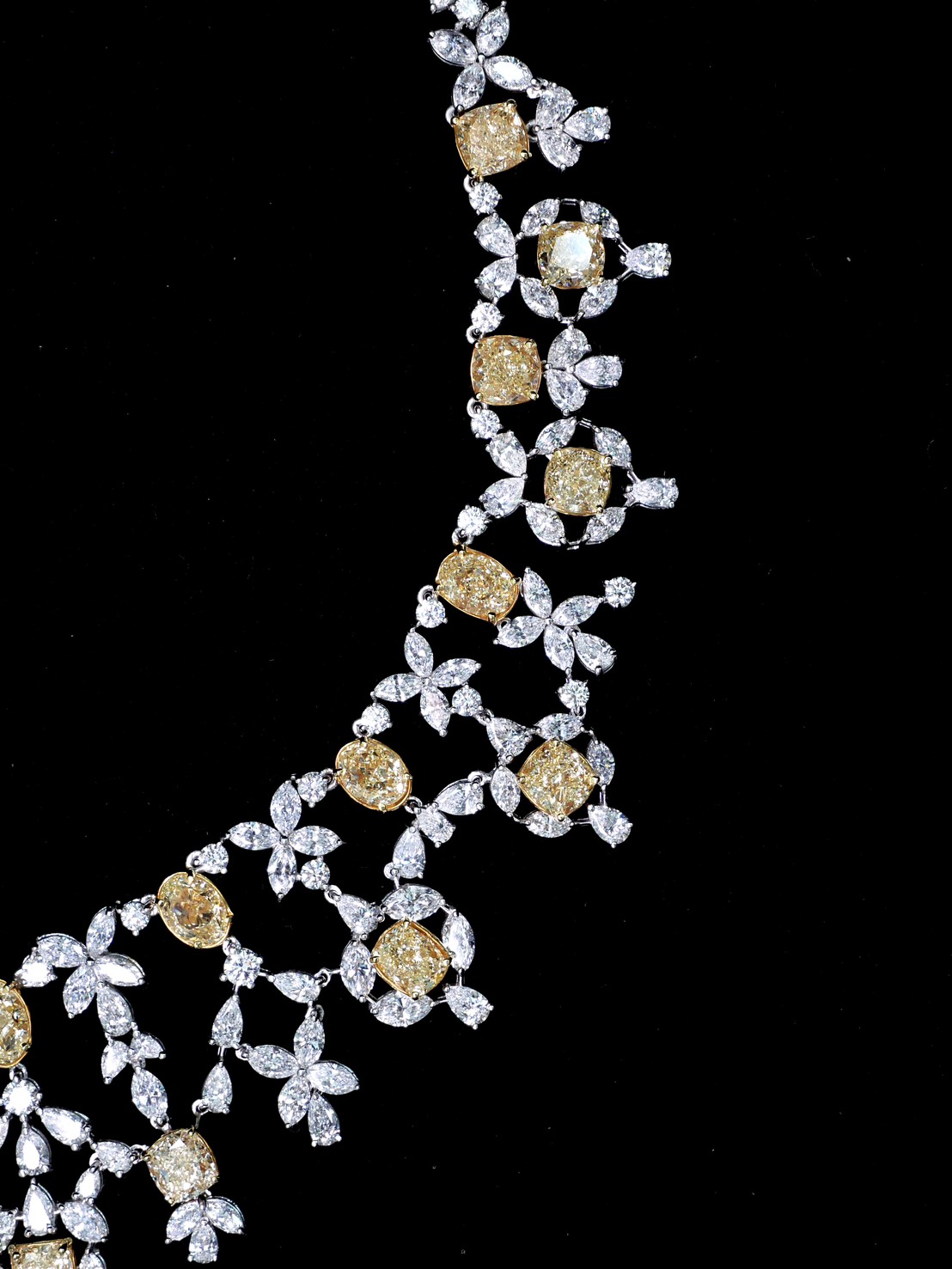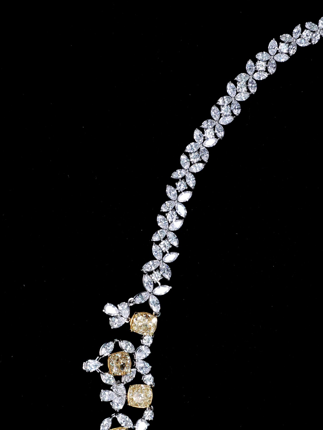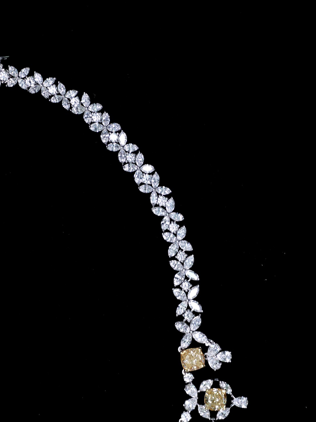 MIX FANCY YELLOW GIA 28 PCS / 29.86 CTS MARQUISE 210 PCS / 20.64 CTS PEAR 75 PCS / 8.85 CTS ROUND SMALL 62 PCS / 3.94 CTS WHITE GOLD 18K 56.90 GRAMS