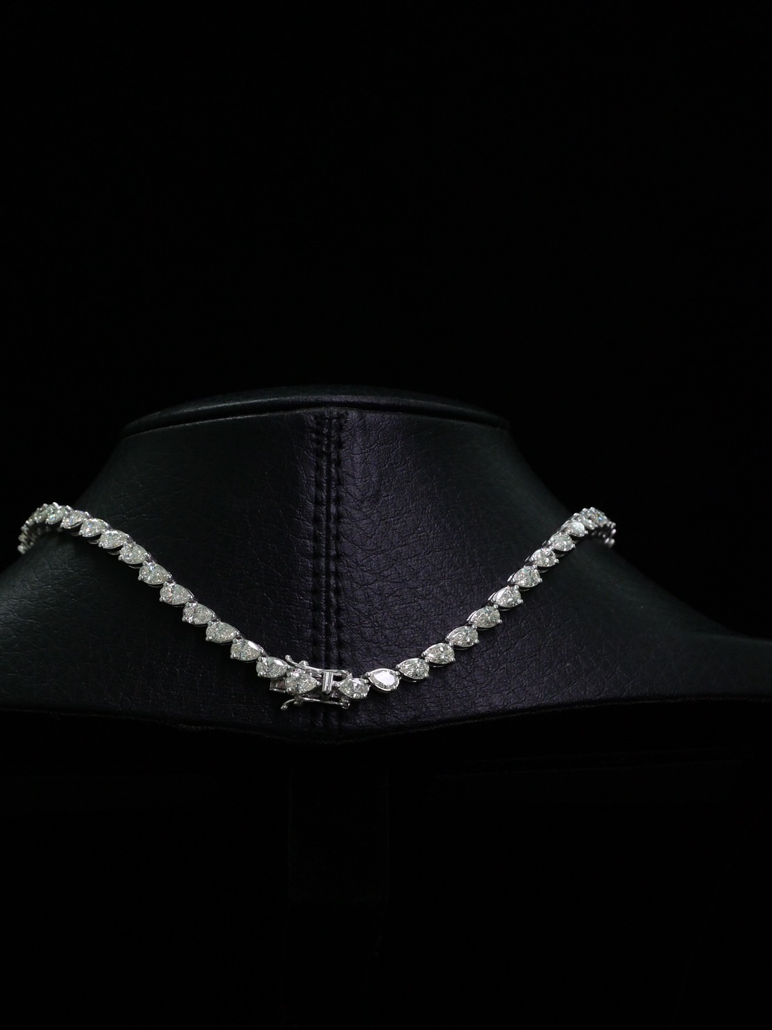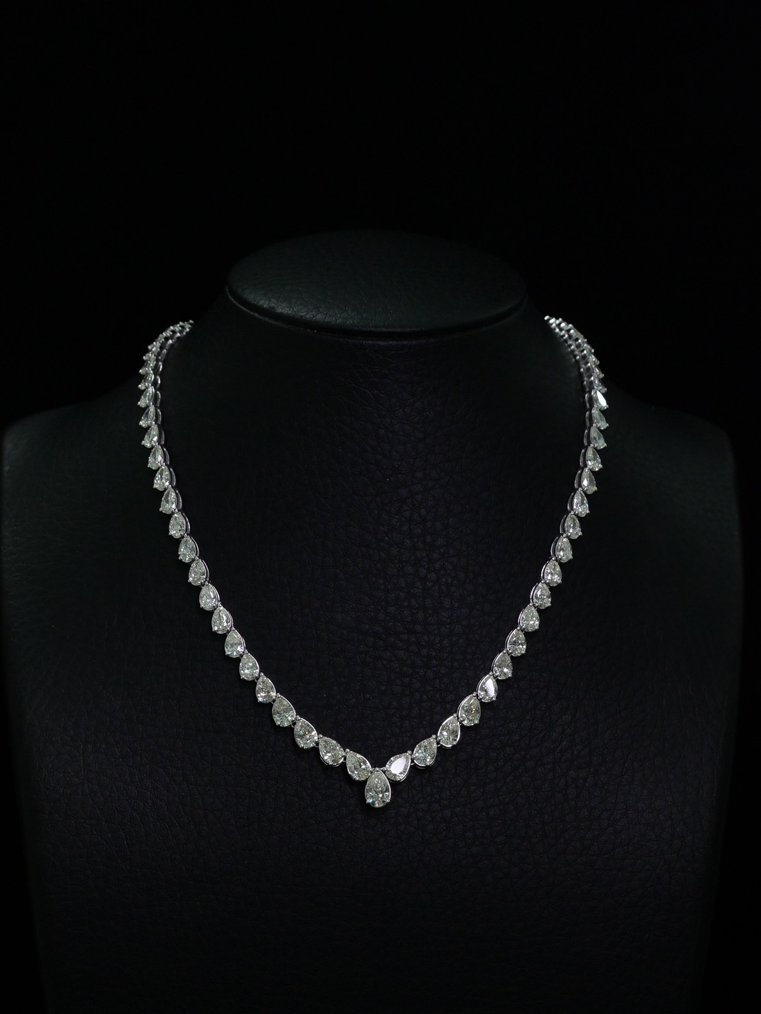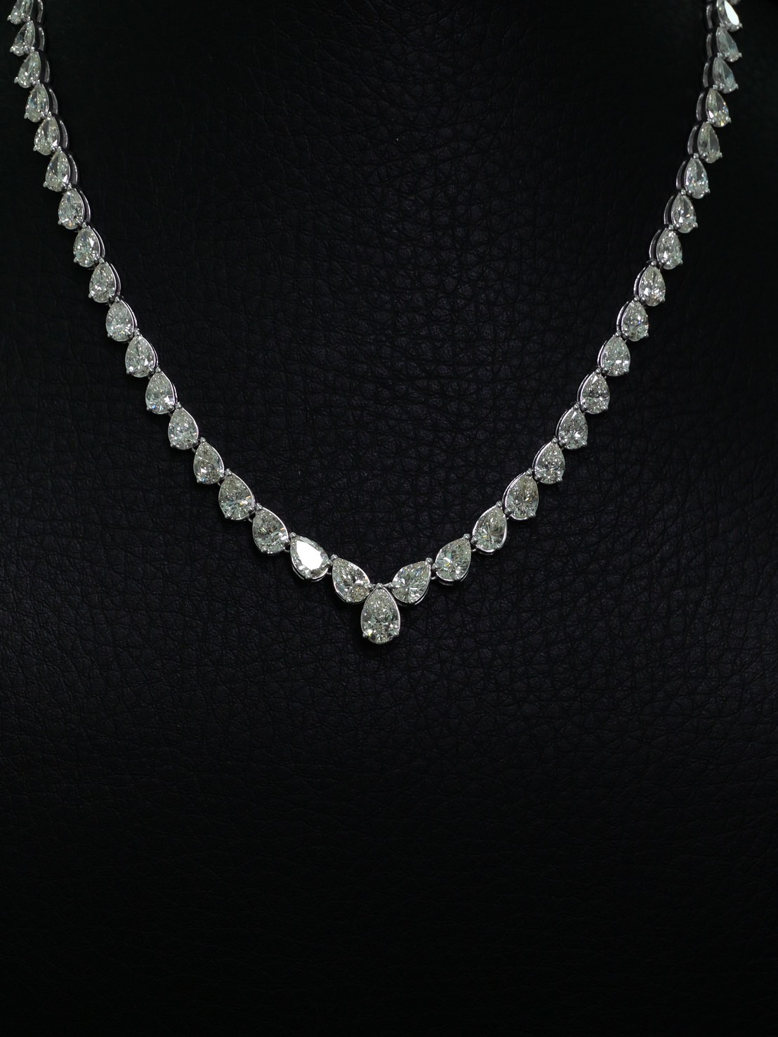 สร้อยคอเพชรน้ำหนักเพชรรวม Pear 73 pcs 20.37 ct สี E F VVS VS Pear 1/0.71 ct Pear 8/3.81 ct Pear 8/2.96 ct Pear 8/2.56 ct Pear 12/3.11 ct Pear 36/7.22 ct White gold 18k. 34.4 g