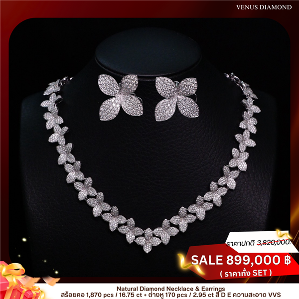 ต่างหูเพชร 2.95 ct +สร้อยคอ 16.75 ct สี D-E ความสะอาด VVS ใบเซอร์ HKD