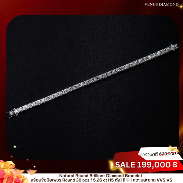 สร้อยข้อมือ Diamond 36 pcs 5.26 ct 15 ตัง H-I ความสะอาด VVS VS