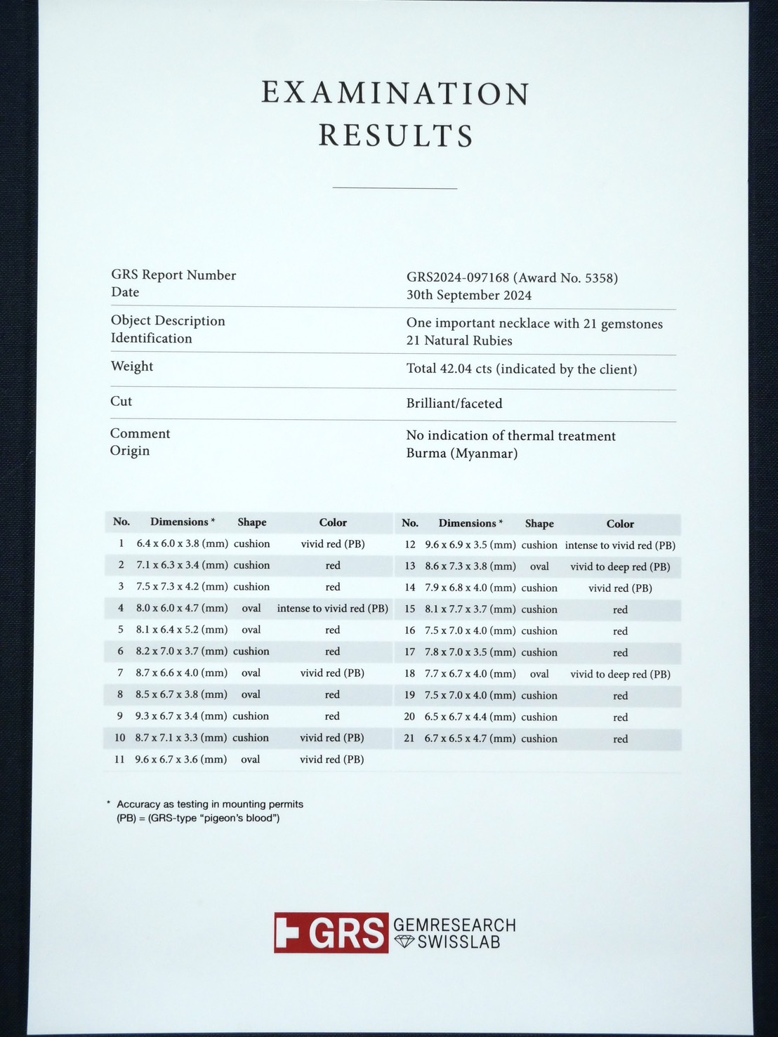 สร้อยคอ Natural Ruby 21 pcs 42.04 ct ( Myanmar)