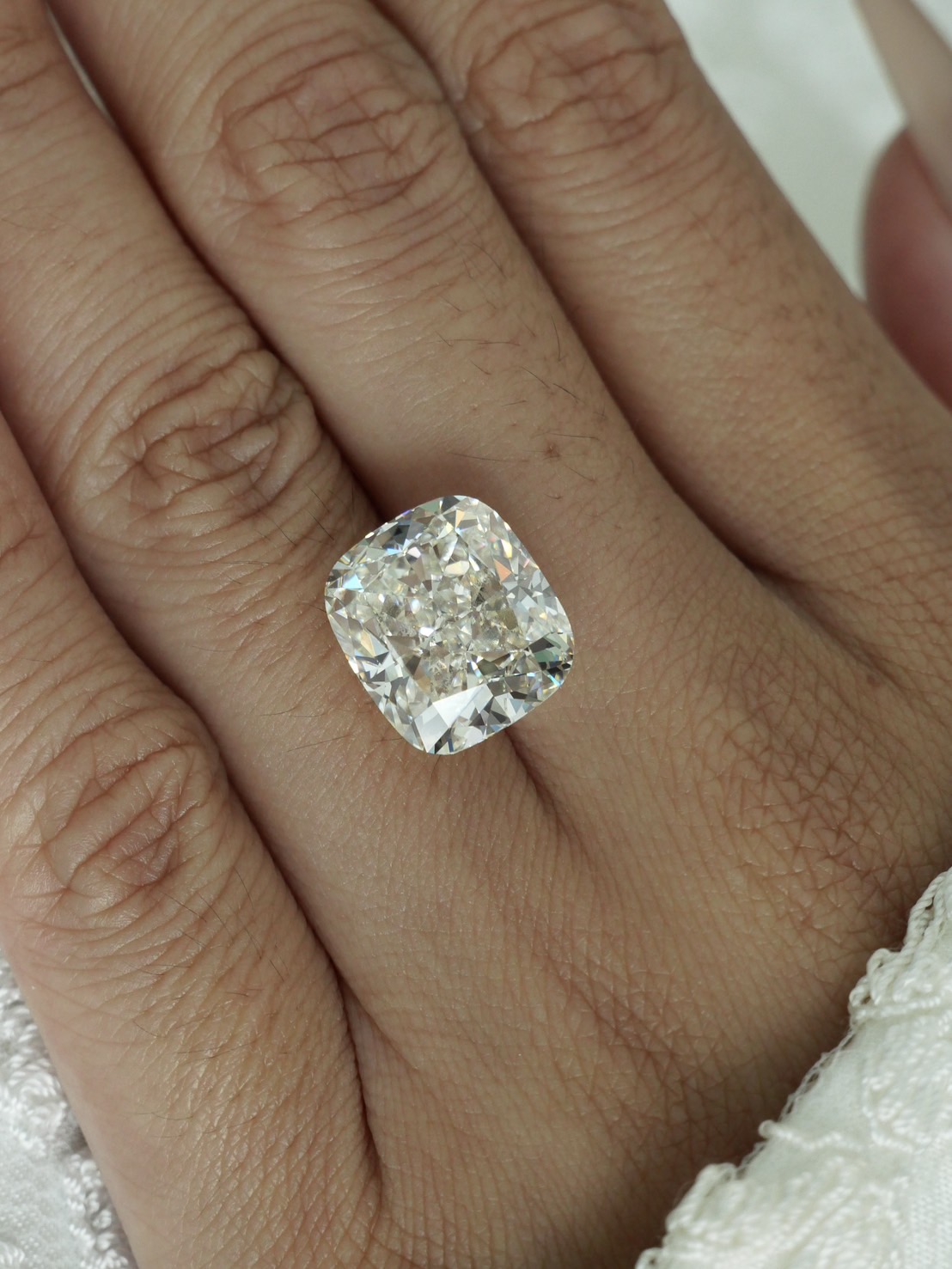 เพชร Cushion 10.02 ct เพชรขาวน้ำ 96 สี H เพชรสะอาด IF