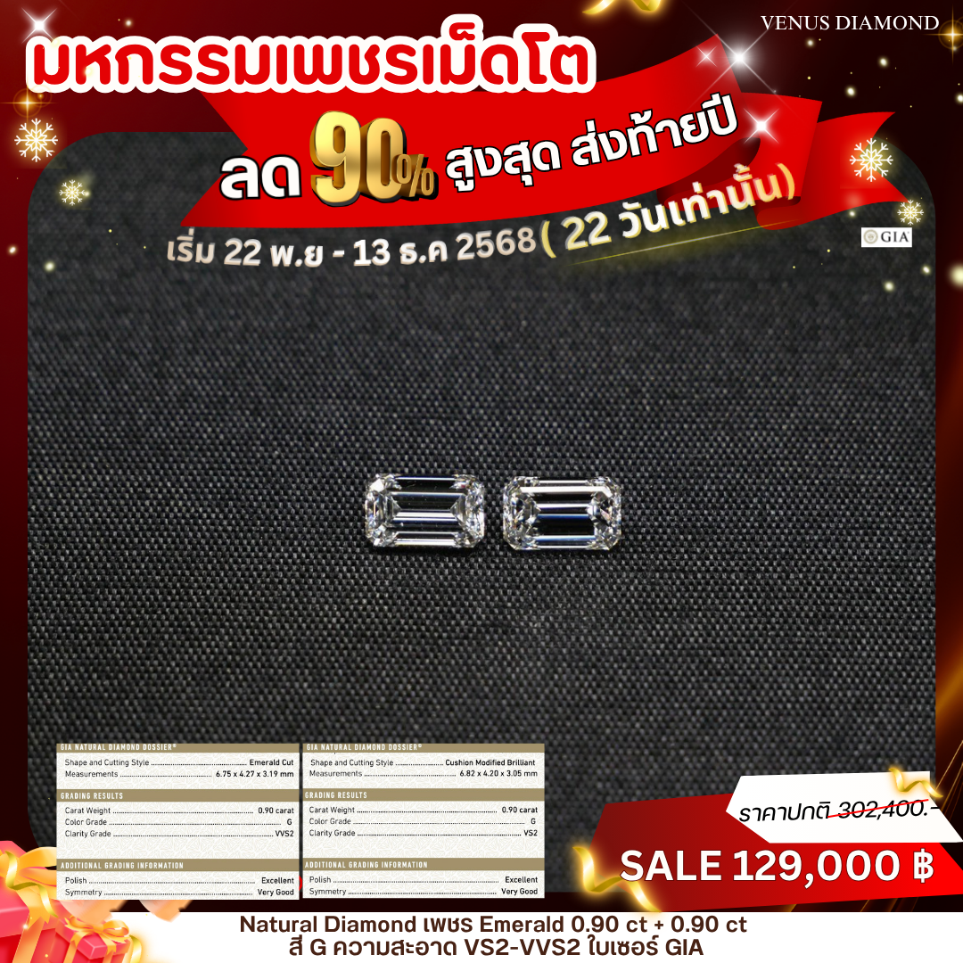 เพชร Emerald 0.90+0.90 ct เพชรขาวน้ำ 97 สี G color