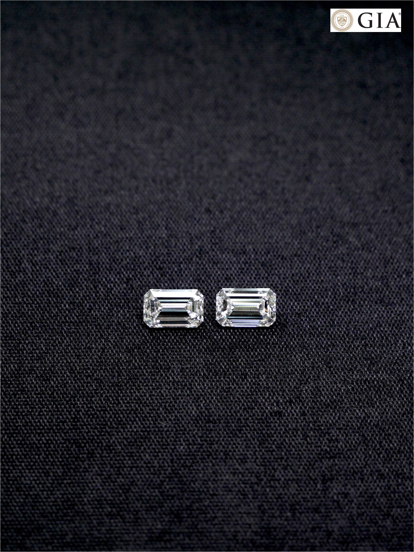 เพชร Emerald 0.90 ct+0.93 ct เพชรขาวน้ำ 96 สี H color