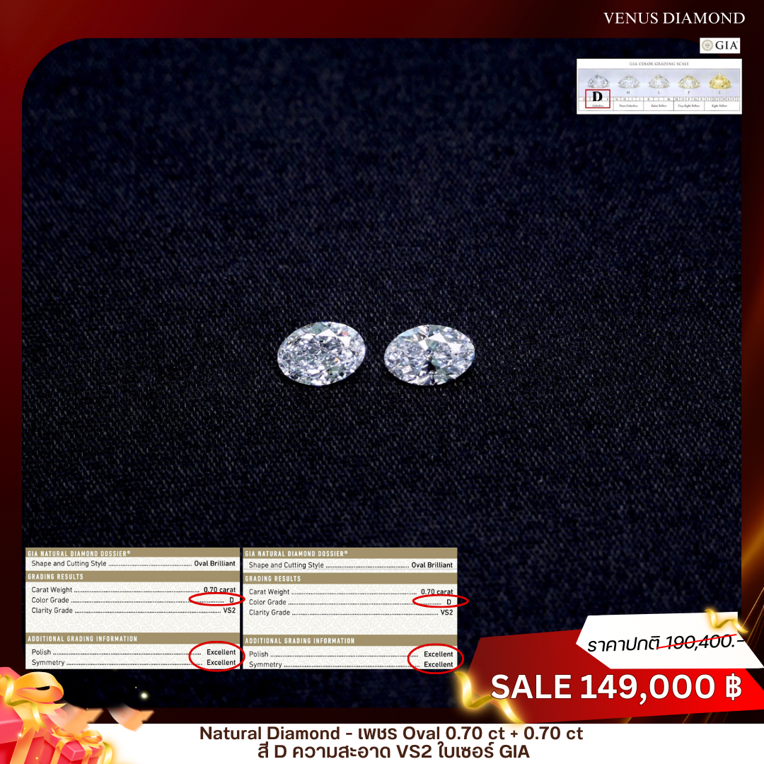 Oval 0.70 ct สี D ความสะอาด VS2 2X N GIA 2517546084 Oval 0.70 ct สี D ความสะอาด VS2 2X N GIA 2527009340