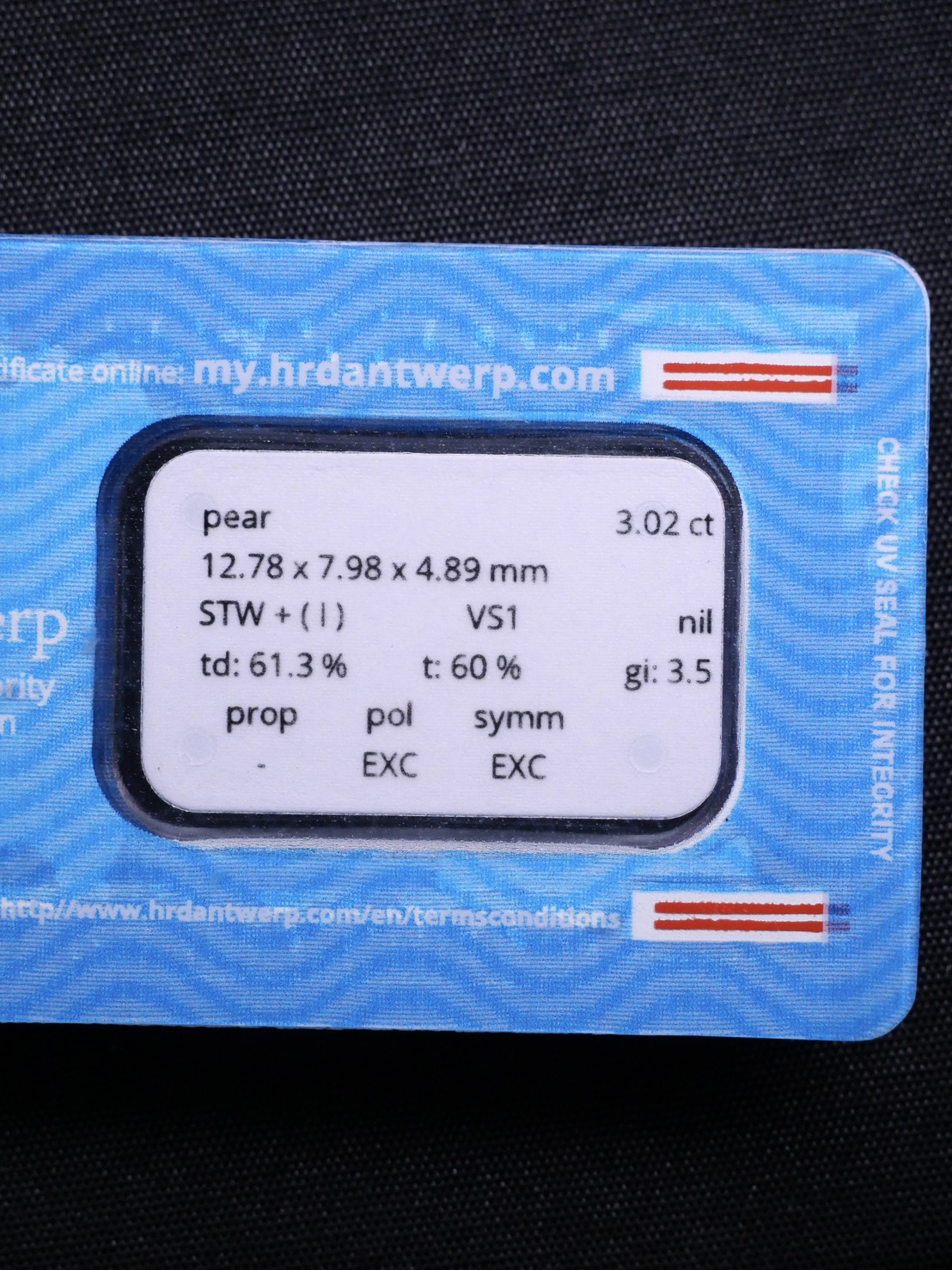 Pear 3.02 ct สี I ความสะอาด VS1 2X N HRD 240000213693