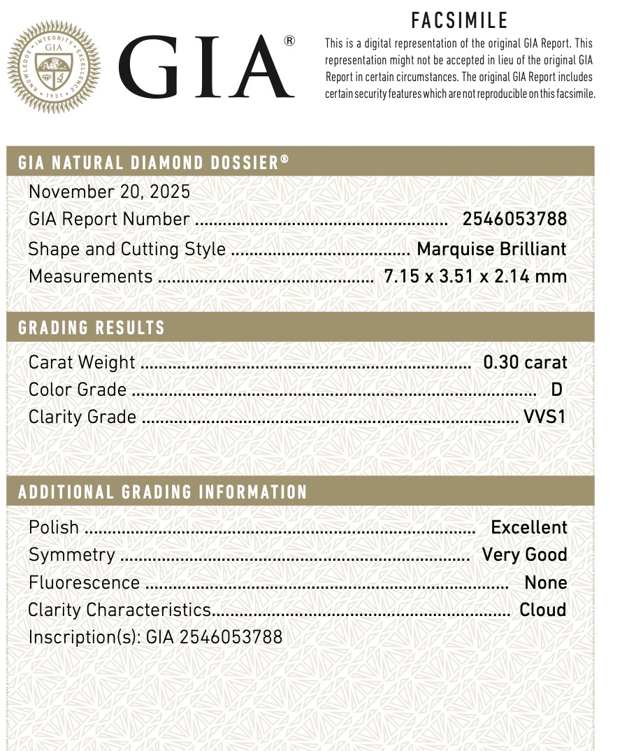 7. Marquise 0.30 ct สี D VVS1 1X1VG N GIA 2546053788 ราคาเต็ม 27,600 บาท ราคาขาย 21,000 บาท
