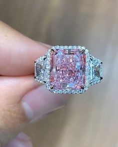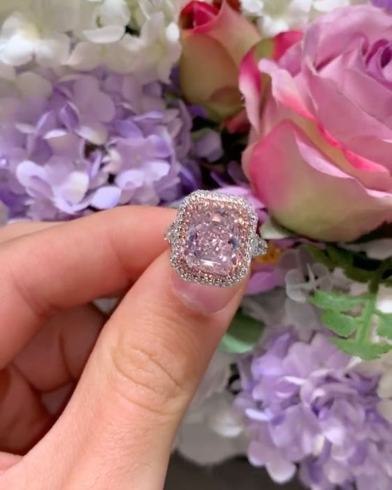 เพชร Radiant Cut [ Radiant Cut Diamond ] น้ำหนัก 0.50 กะรัต สี Fancy Intense Pink เพชรสะอาดระดับ SI1 [ Very Very Slightly Included ] เพชรสะอาดมาก