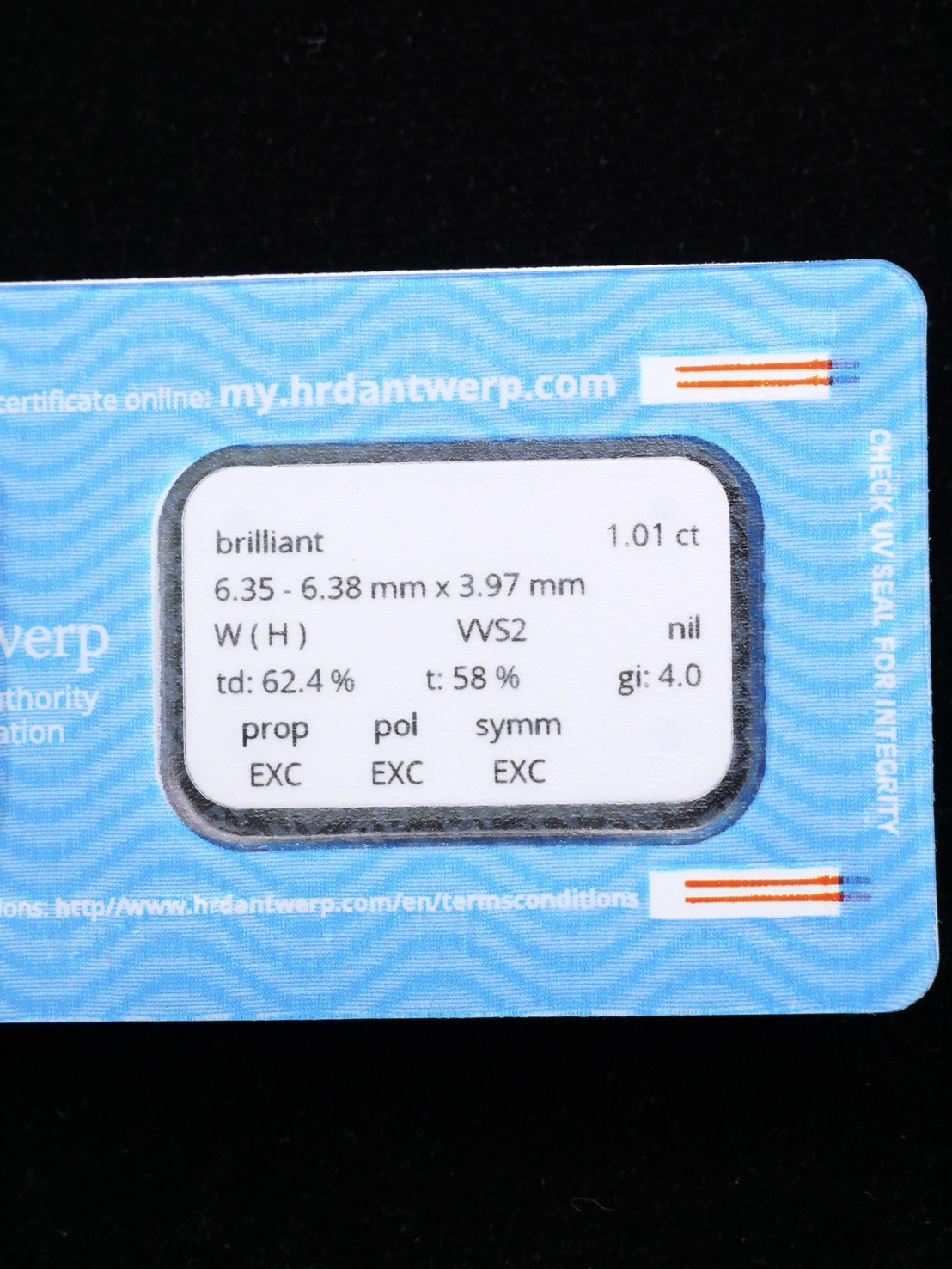 Round 1.01 ct สี H ความสะอาด VVS2 3X N HRD 250000282588