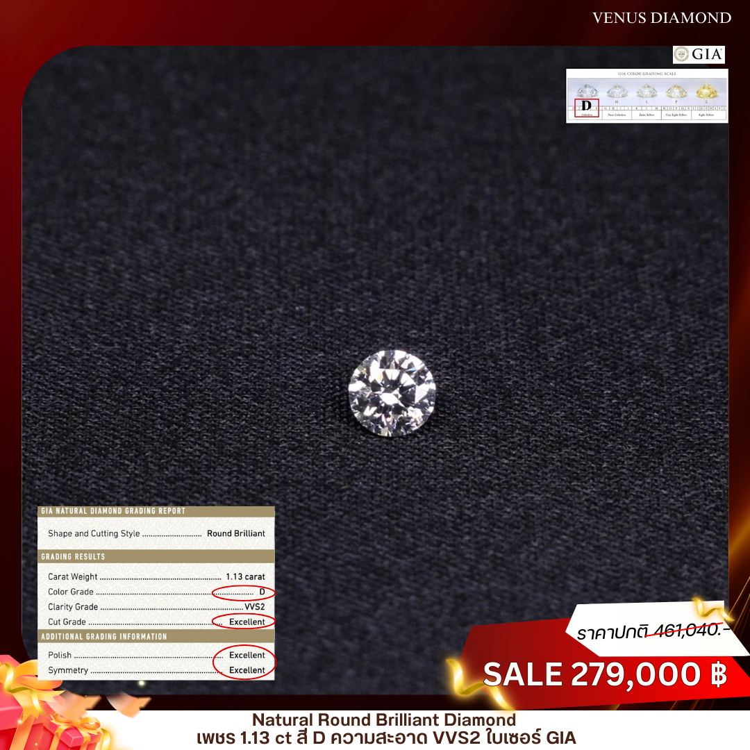 เพชร Round 1.13 ct สี D เพชรสะอาด VVS2