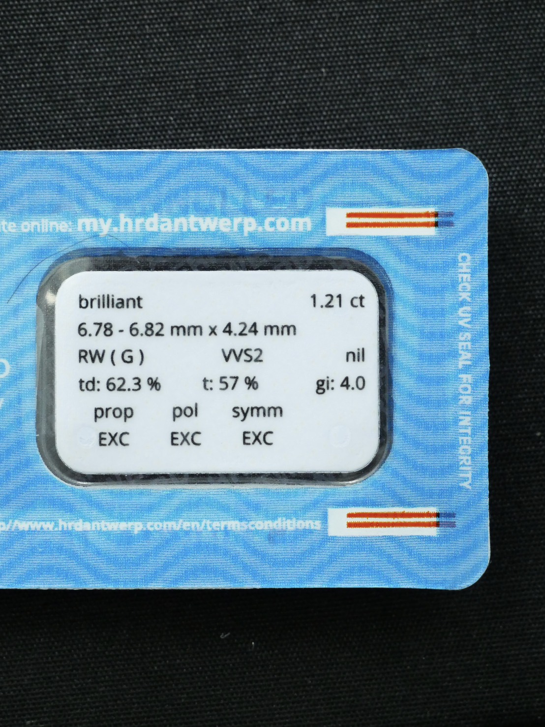 Round 1.21 ct สี G ความสะอาด VVS2 3X N HRD 250000266451