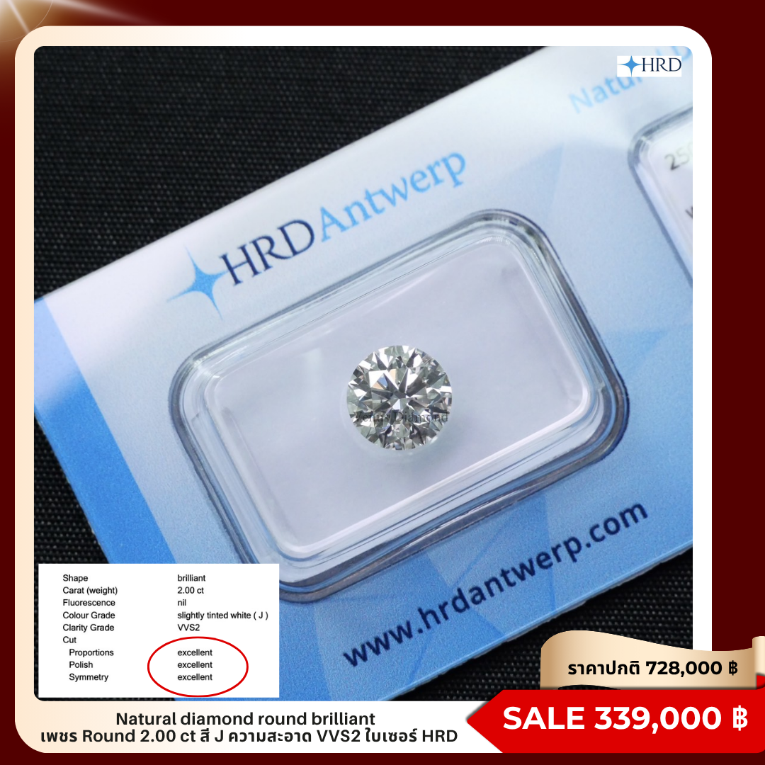 - Round 2.00 ct สี J ความสะอาด VVS2 3X N HRD 250000088603