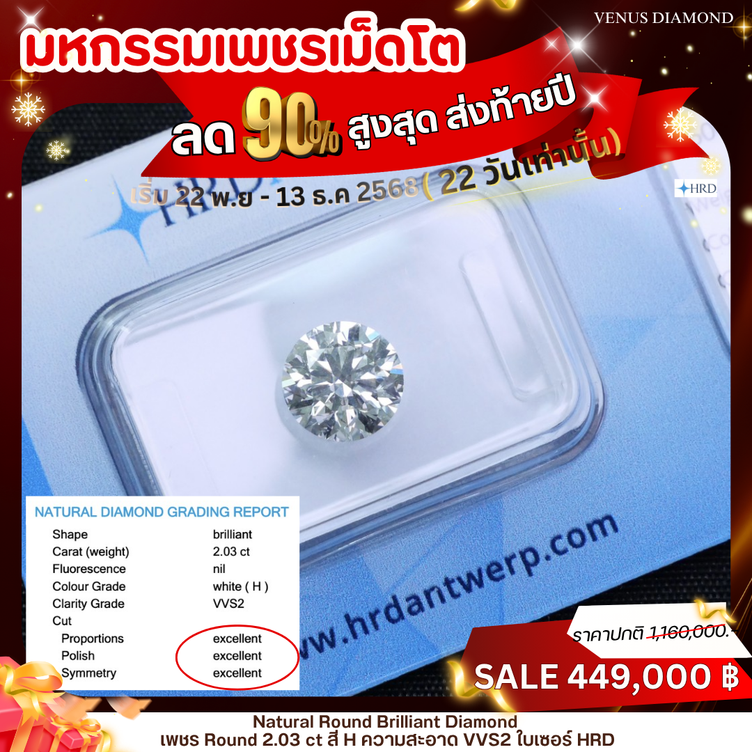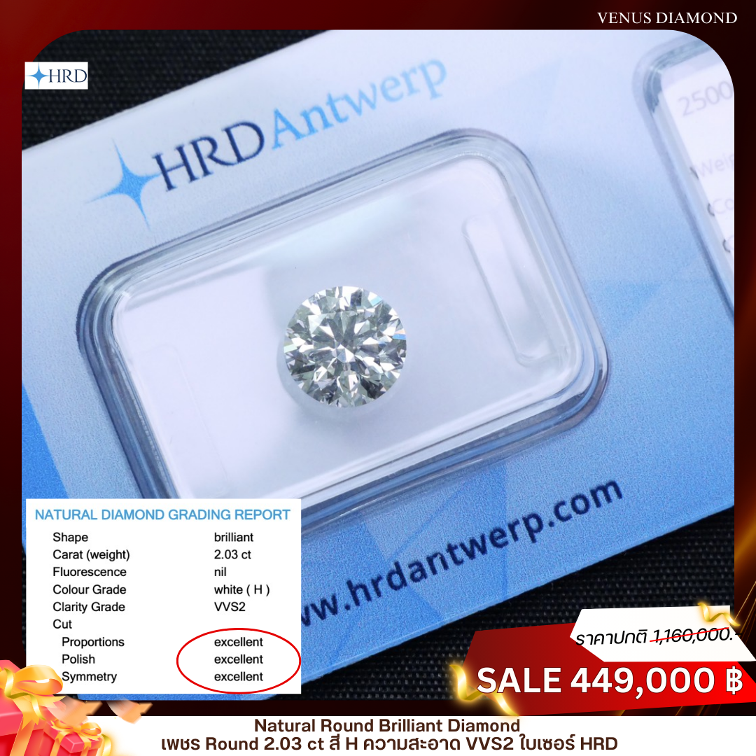 เพชรกลม Round น้ำหนักเพชร 2.03 กะรัต
