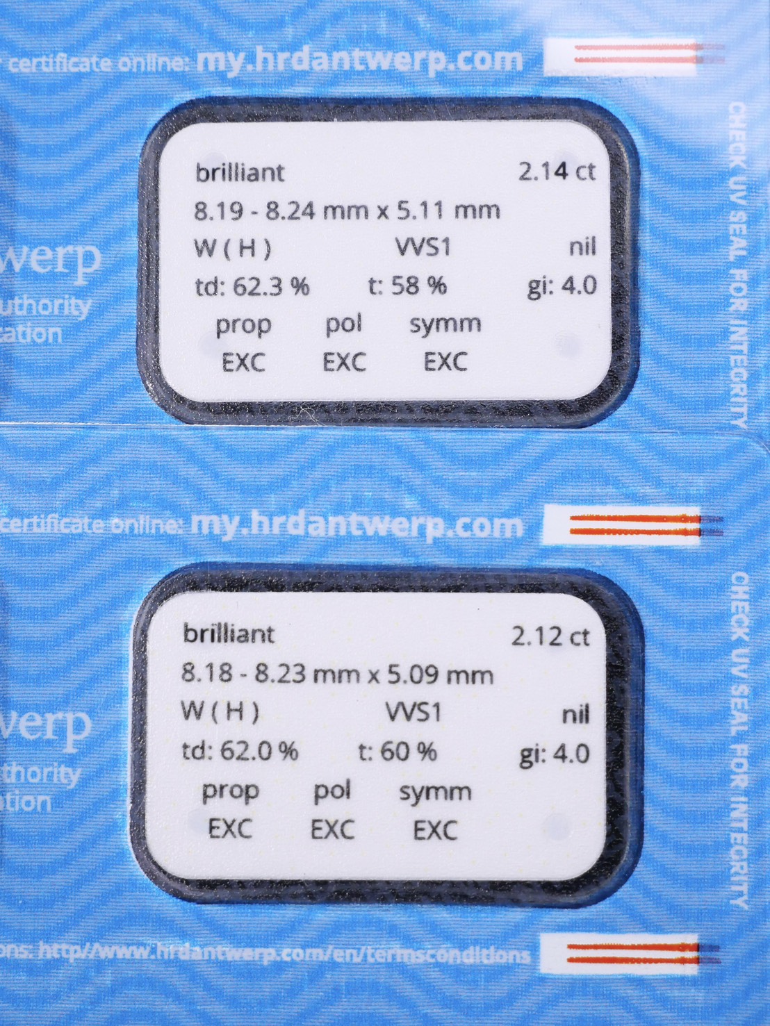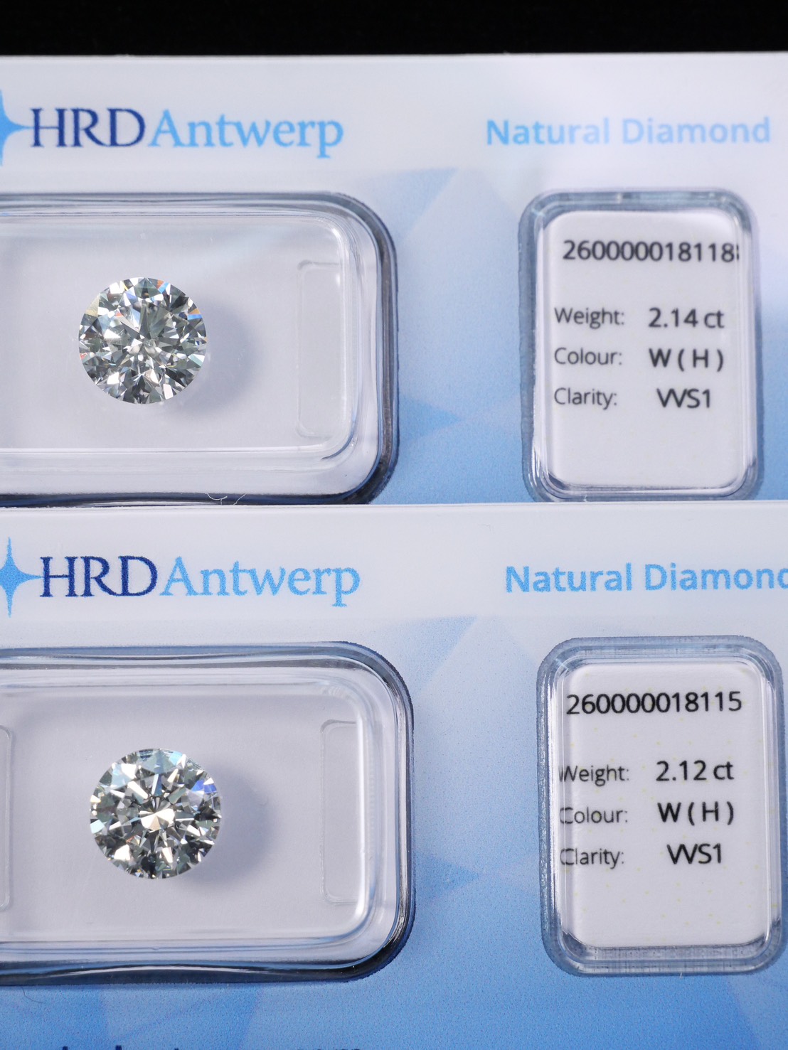 Round 2.14 ct H VVS1 3X N HRD 260000018118 Round 2.12 ct H VVS1 3X N HRD 260000018115