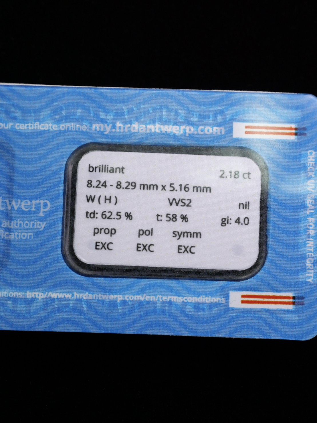 Round 2.18 ct สี H ความสะอาด VVS2 3X N HRD 250000272485