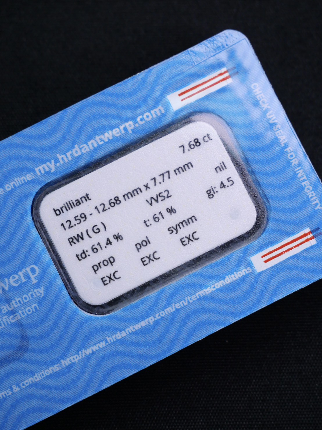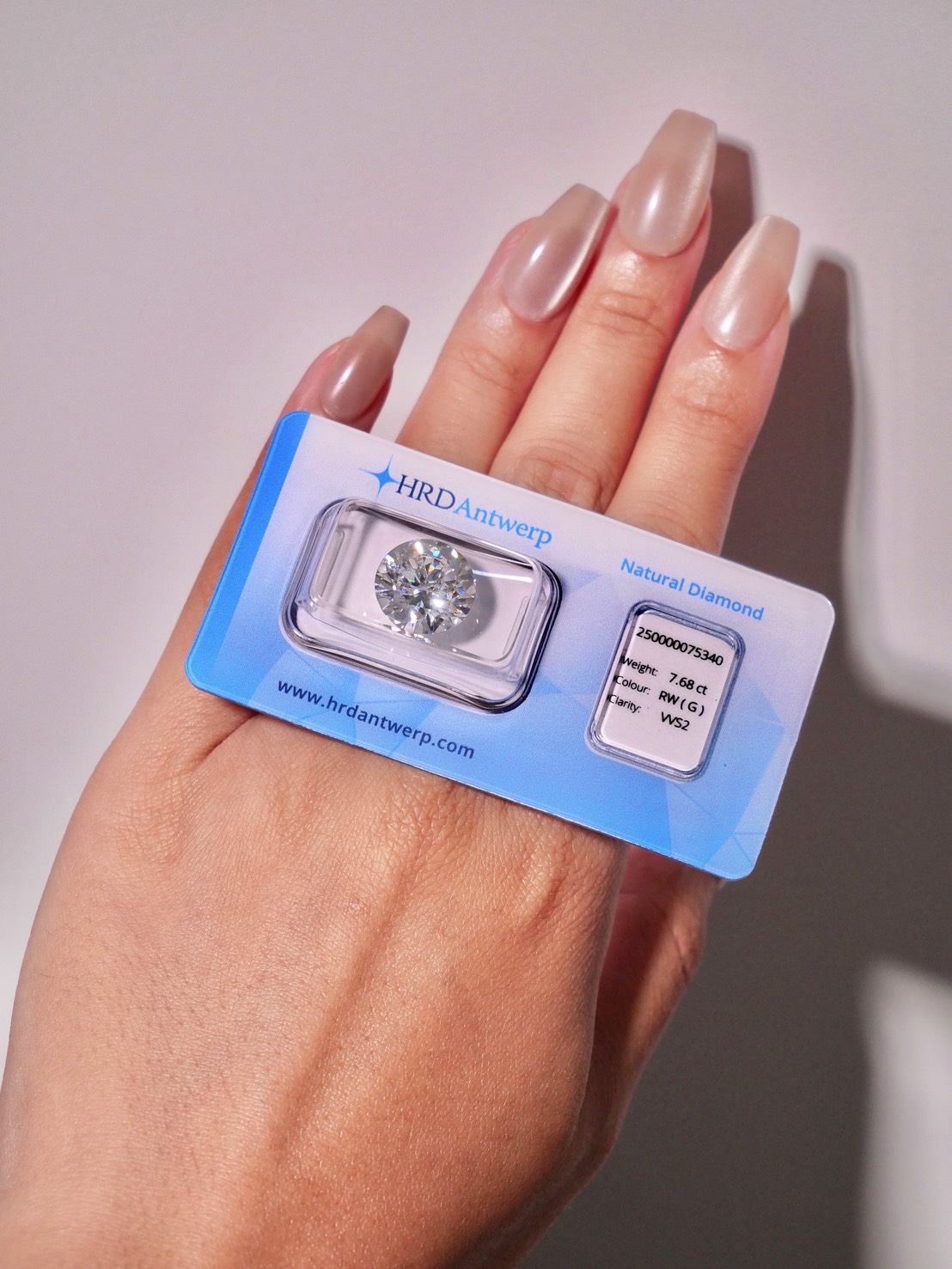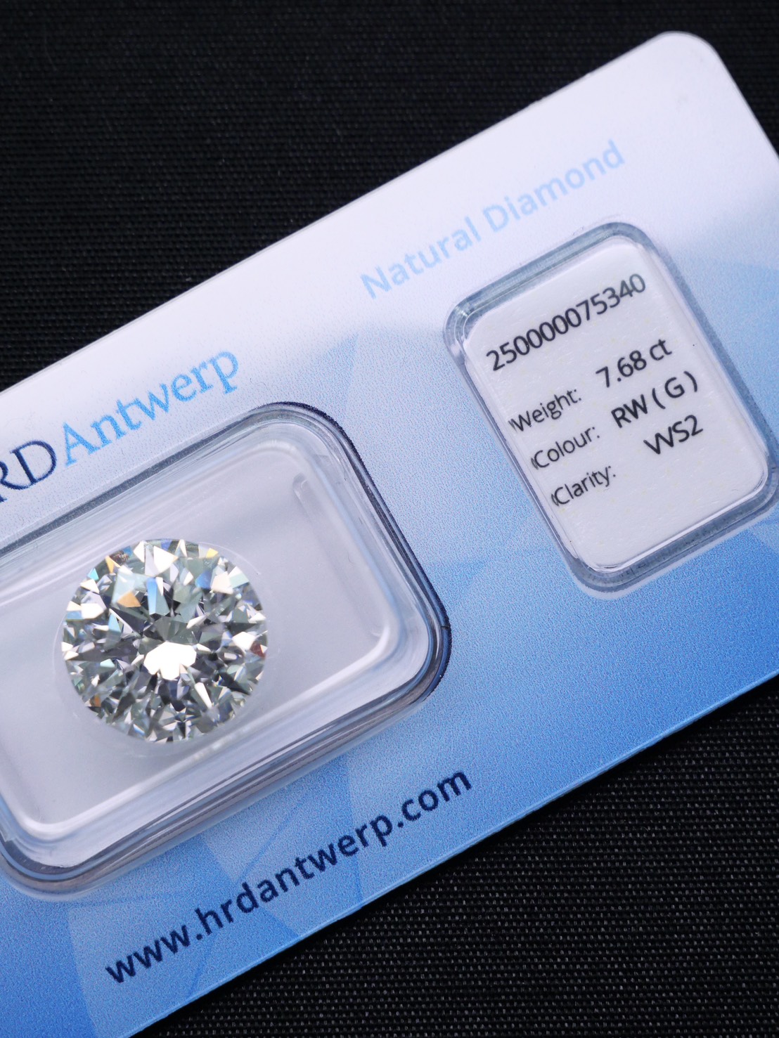Round 7.68 ct G VVS2 3X N HRD 250000075340