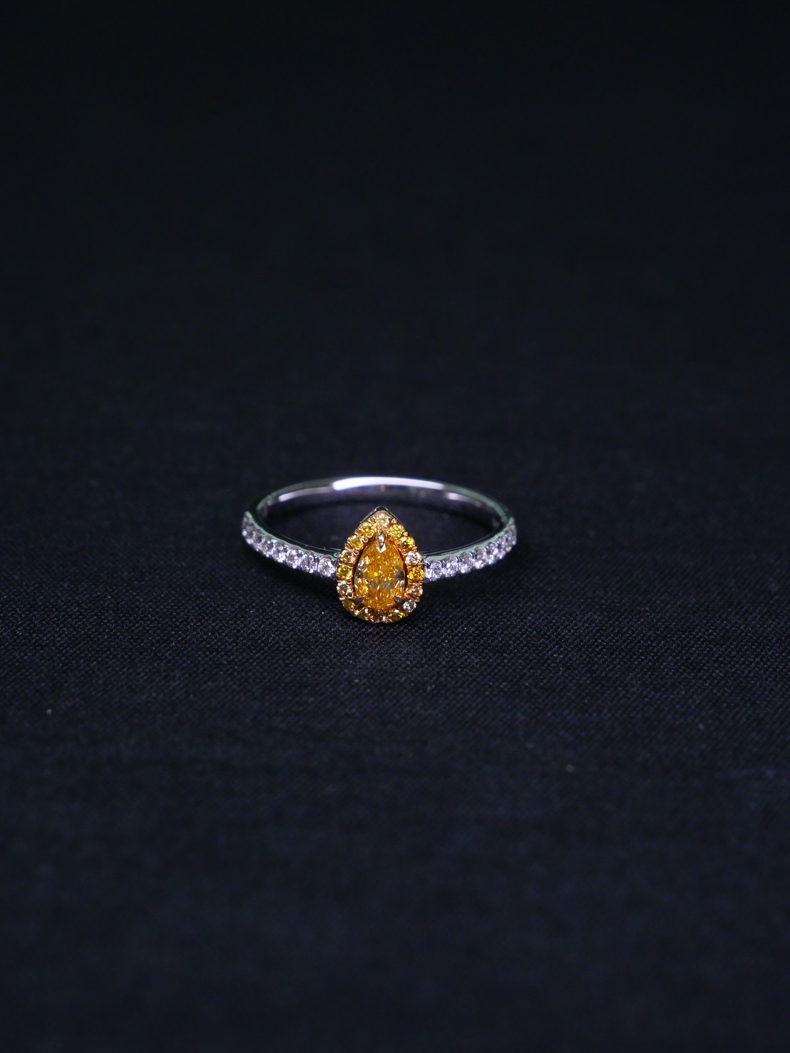 Pear 0.29 ct Fancy Intense Orangy Yellow ความสะอาด VS2 1VG1G STY GIA 1226591144 Round 0.20 ct white gold 18k. 2.15 g