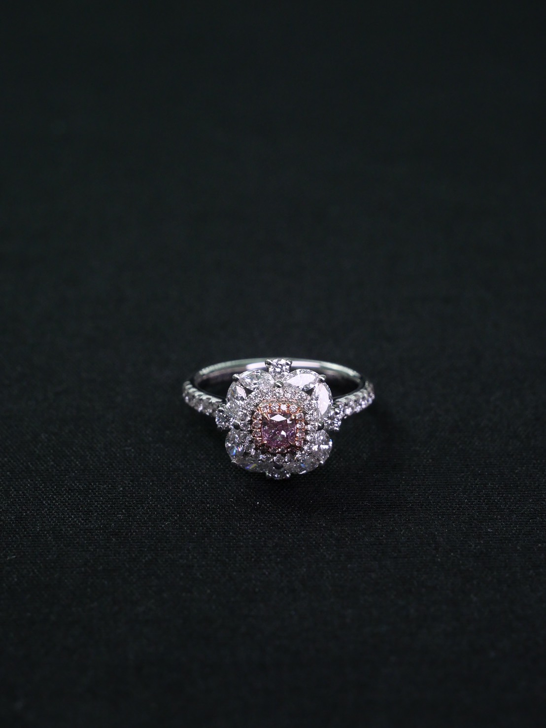 แหวนเพชร Cushion 0.21 ct Fancy Pink-Purple I2 1VG1G N GIA 6183861816 Round 1.02 ct white gold 18k. 4.02 g.