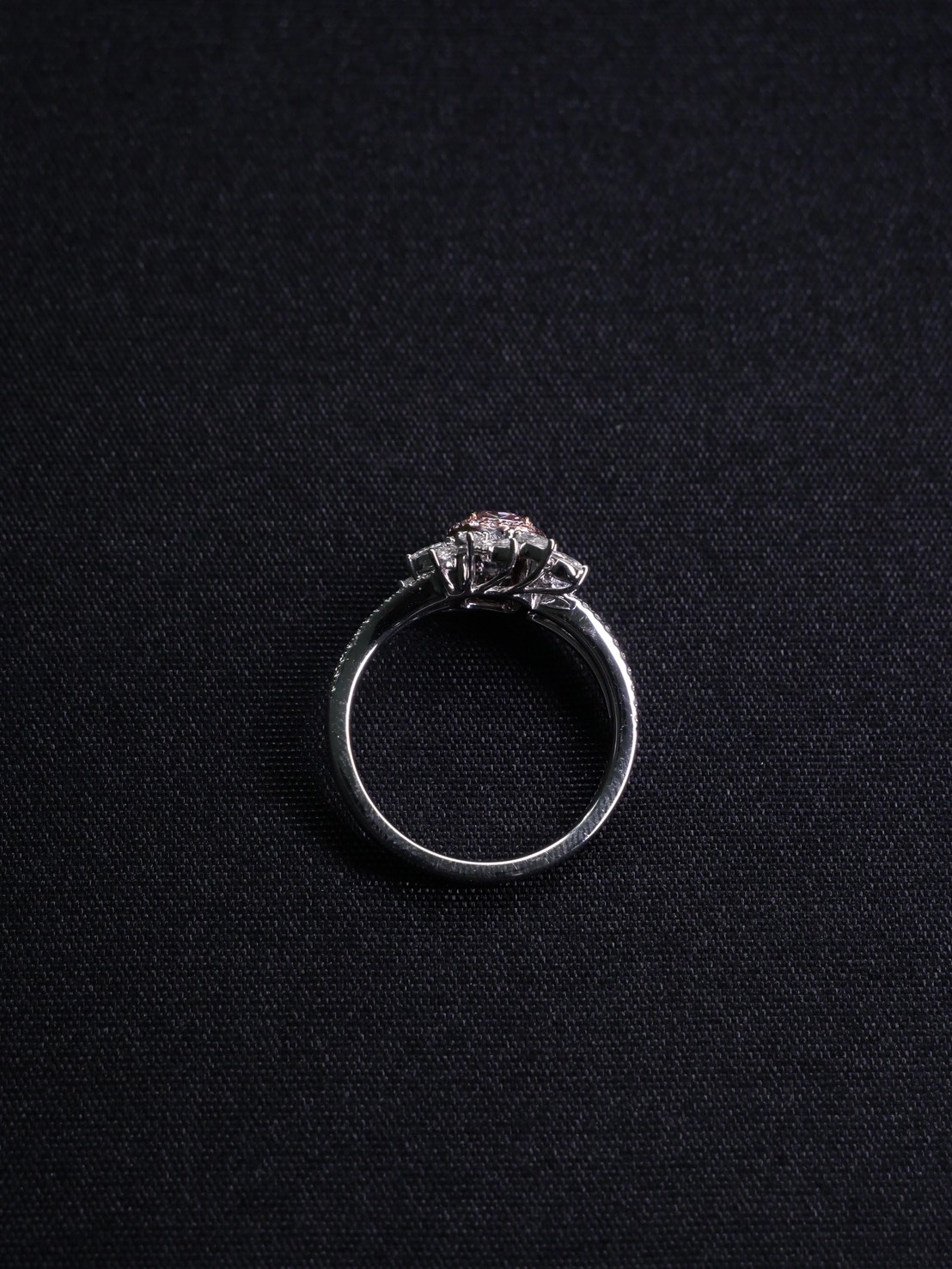 แหวนเพชร Cushion 0.37 ct Light Pink ความสะอาด VS2 1X1VG N GIA 1172028469 Round 0.57 ct white gold 18 k.4.29 g.