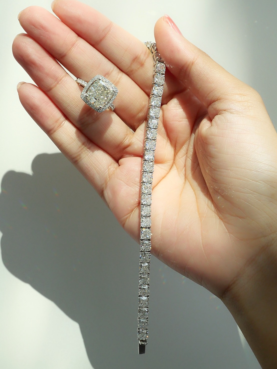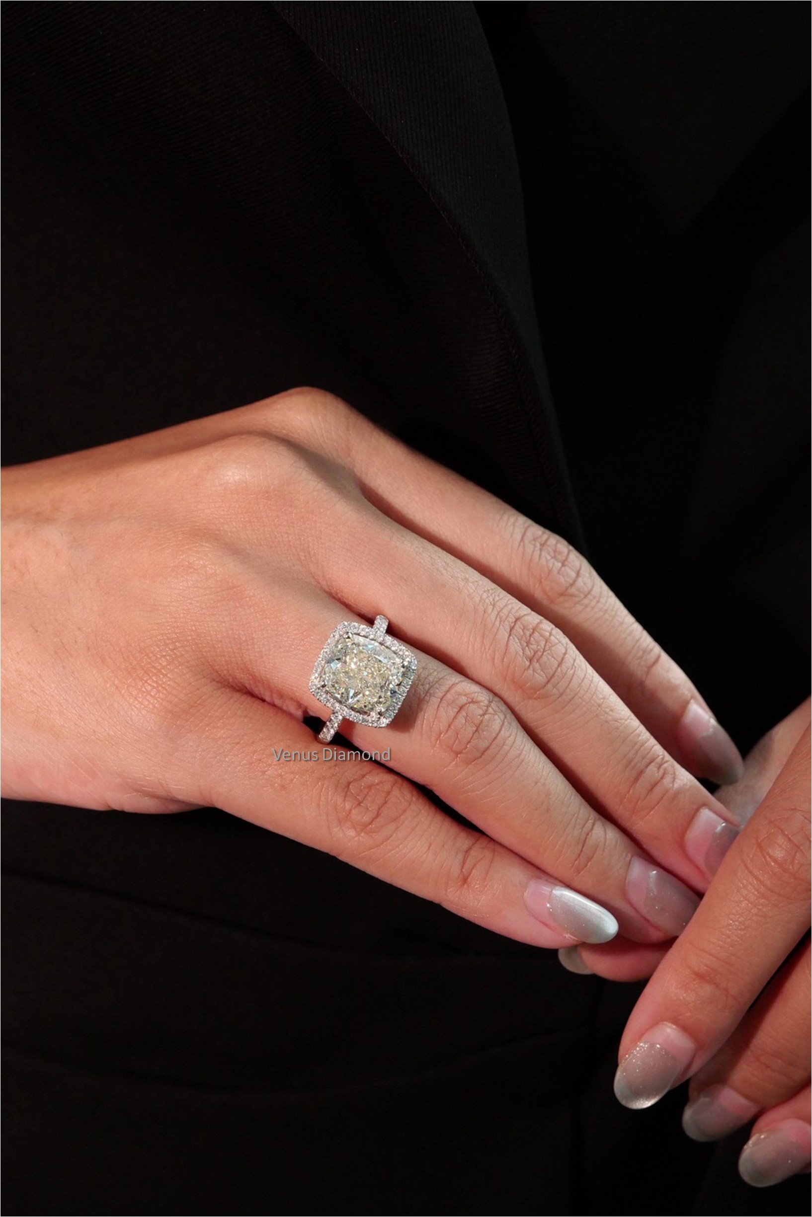 แหวนเพชร Cushion 6.06 ct เพชรน้ำ 92 สี L เพชรสะอาด VS1