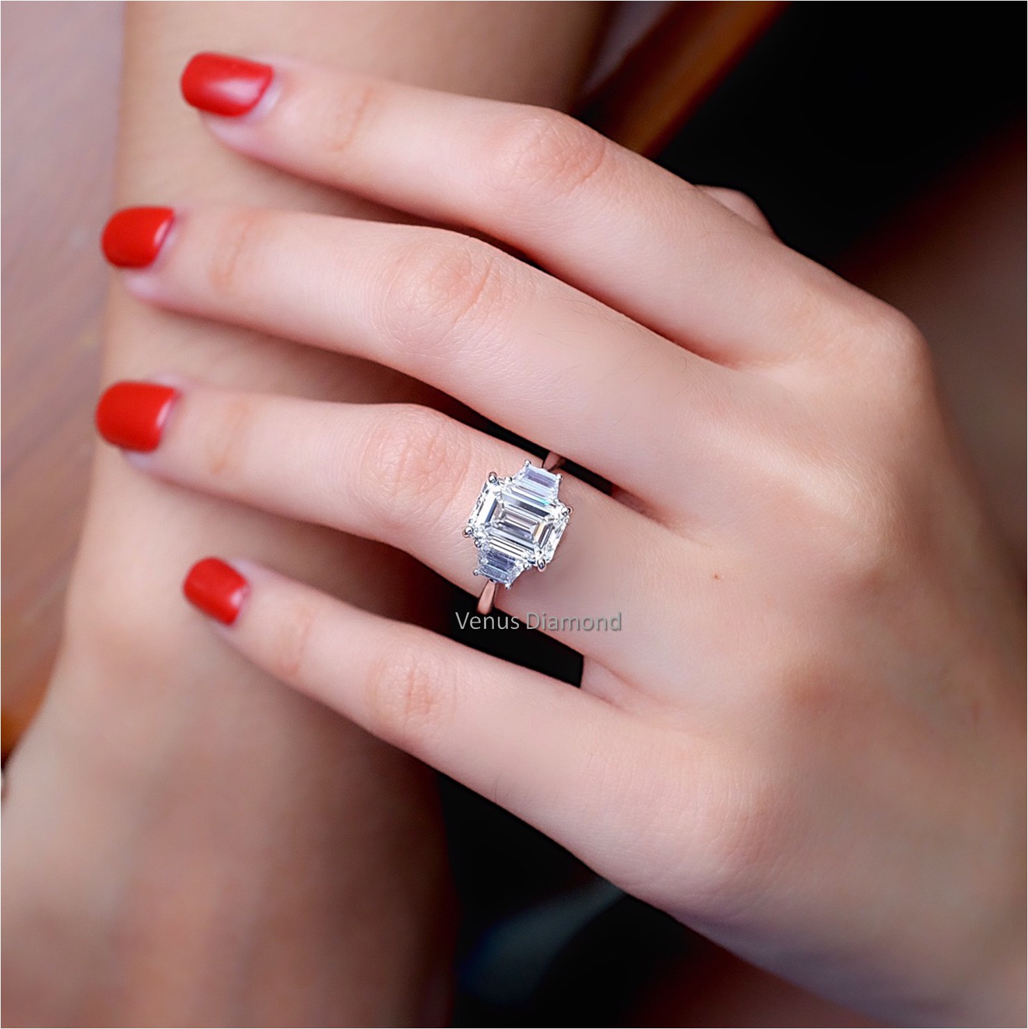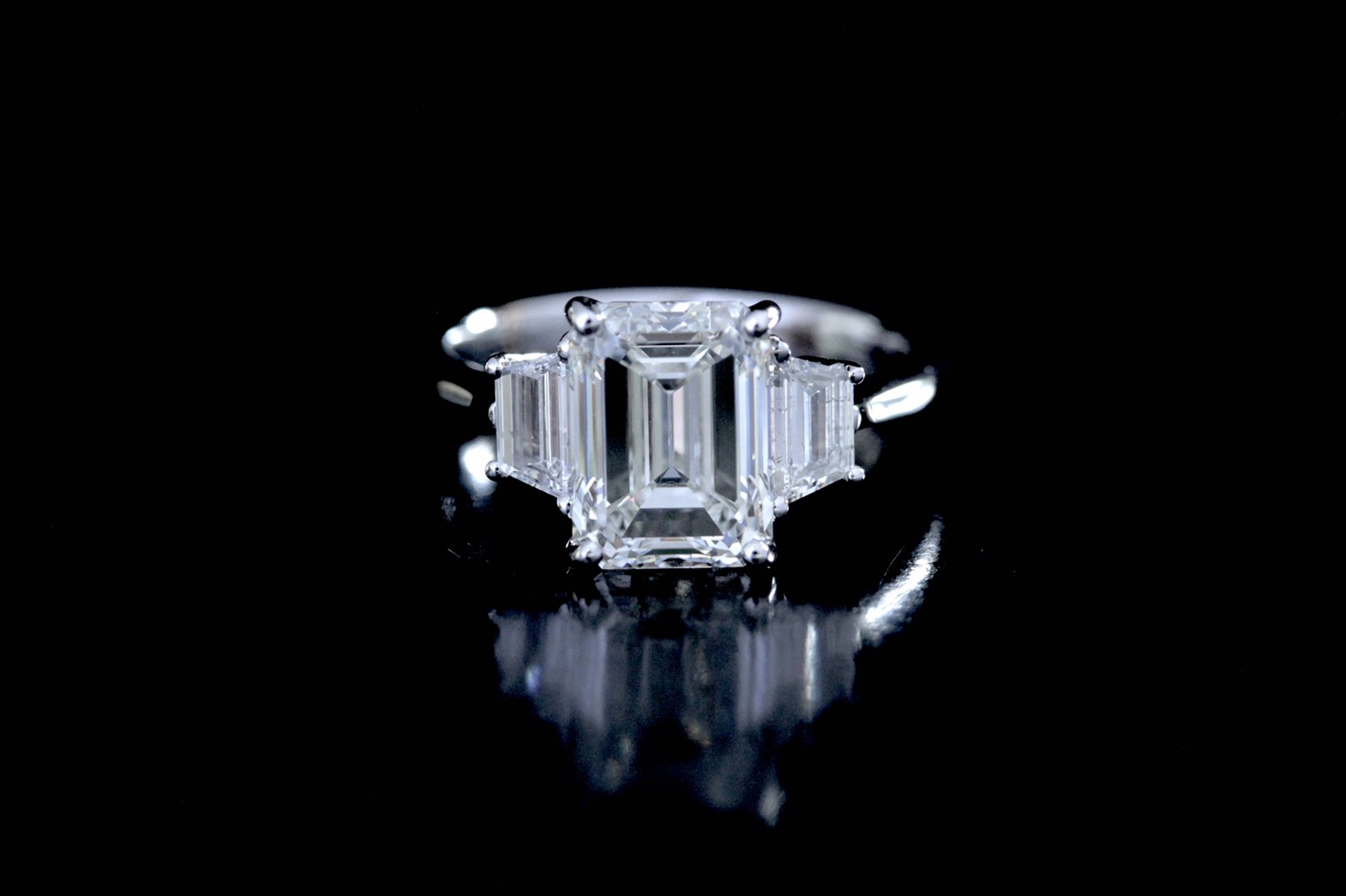 แหวนเพชร Emerald เพชรเม็ดใหญ่หน้ากว้าง น้ำหนัก 3.03 กะรัต เพชรน้ำขาวมากๆๆ น้ำ 96 H