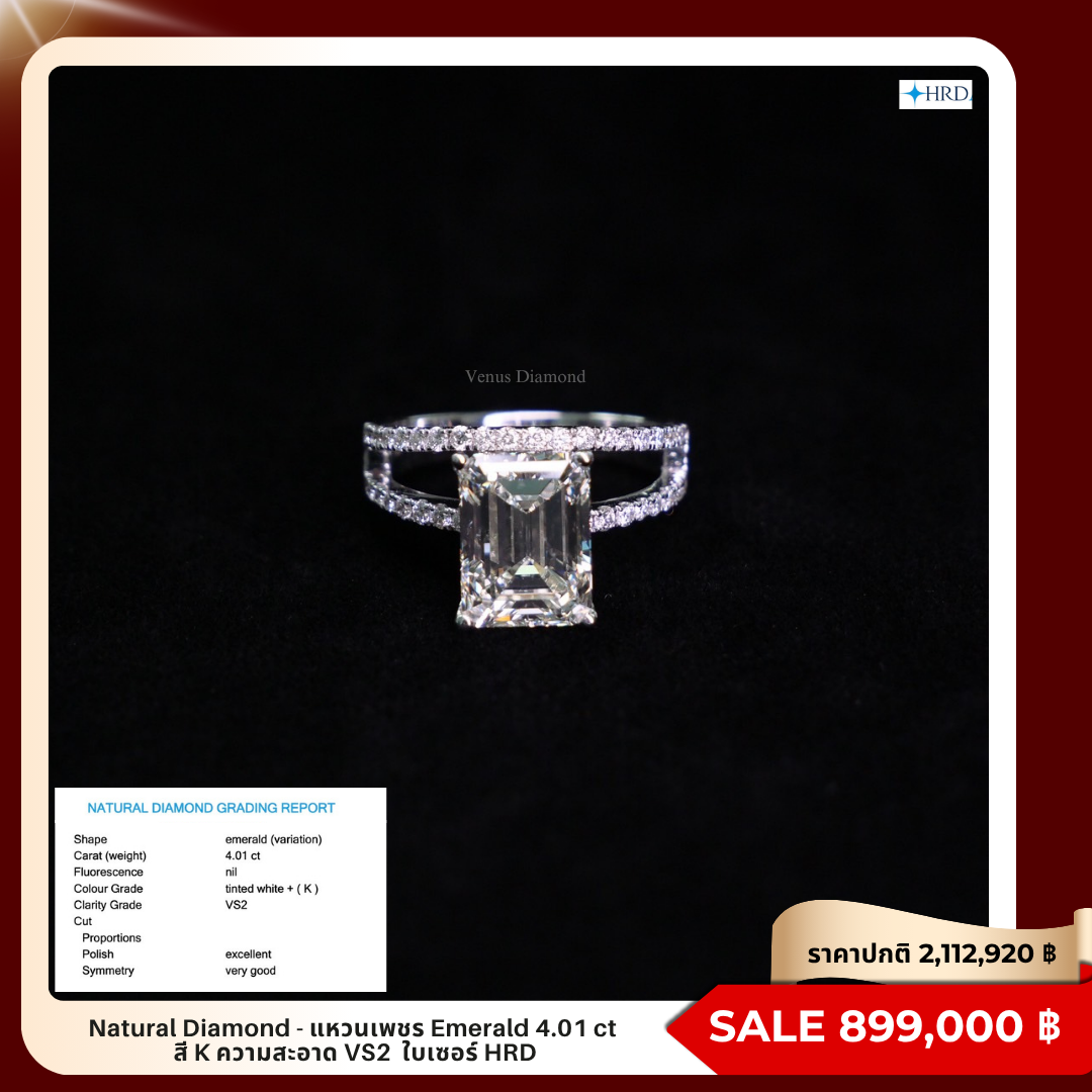 🔥 SALE 899,000 บาท🔥 (ราคานี้ได้ size 4 กะรัต เซอร์ HRD + ตัวเรือนค่า)
