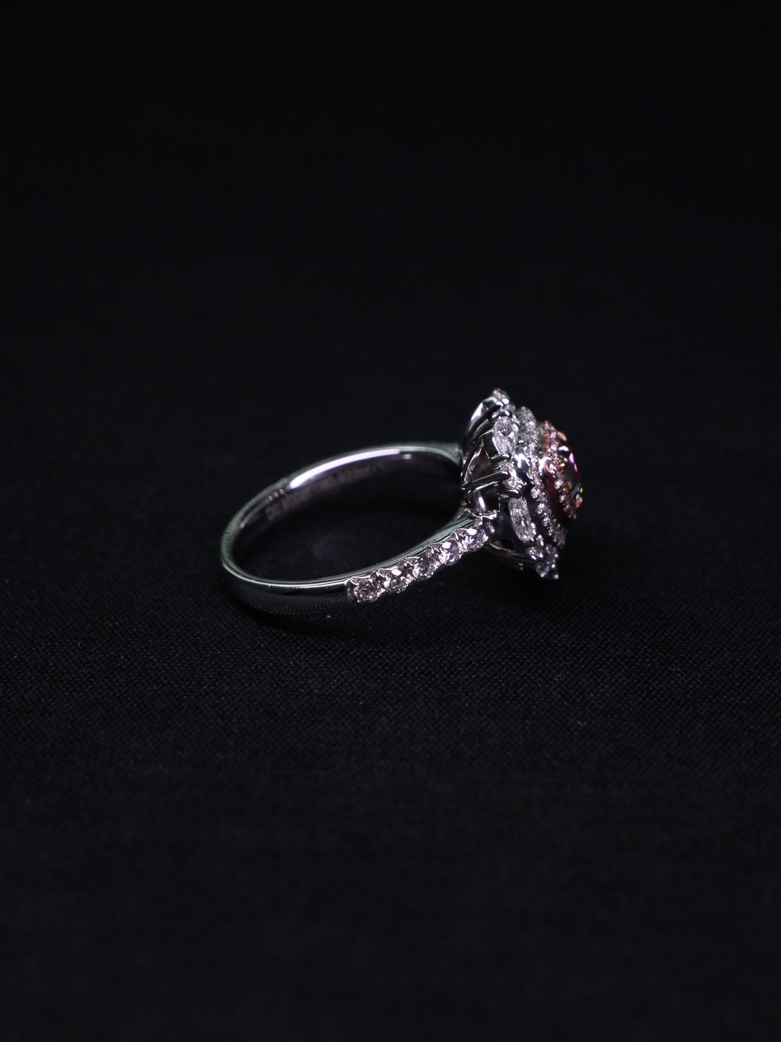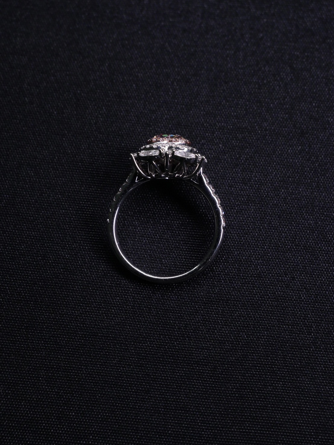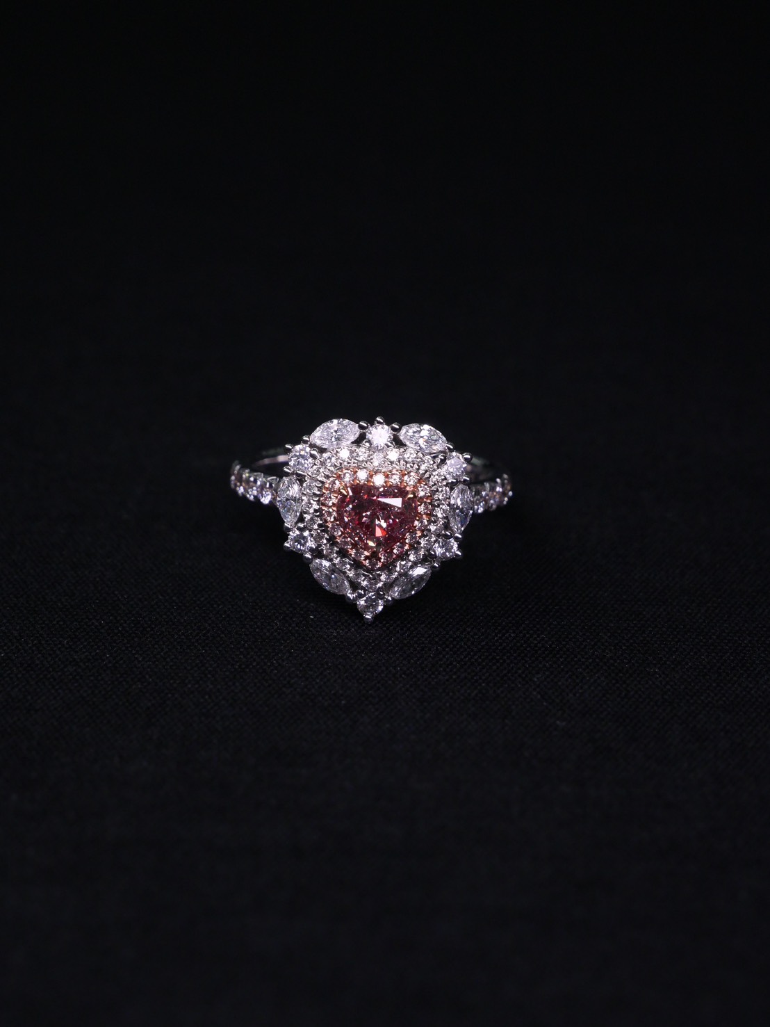 แหวนเพชร Heart 0.60 ct Fancy Pinkish Brown ความสะอาด SI2 2VG N GIA 2437369068 Round 0.92 ct white gold 18k. 4.89 g.
