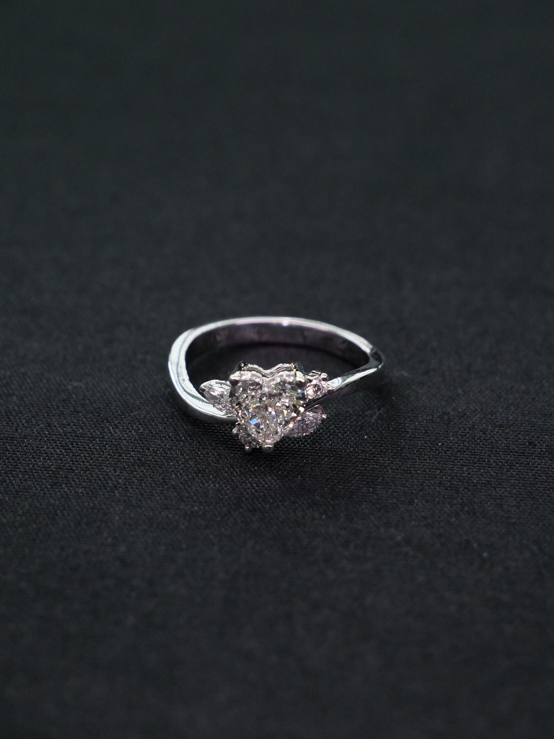 แหวนเพชร Heart 0.90 ct สี J ความสะอาด VS1 GIA 2451303067 Marquise 2 pcs 0.13 ct Round 2 pcs 0.07 ct white gold 18k. 3.67 g.