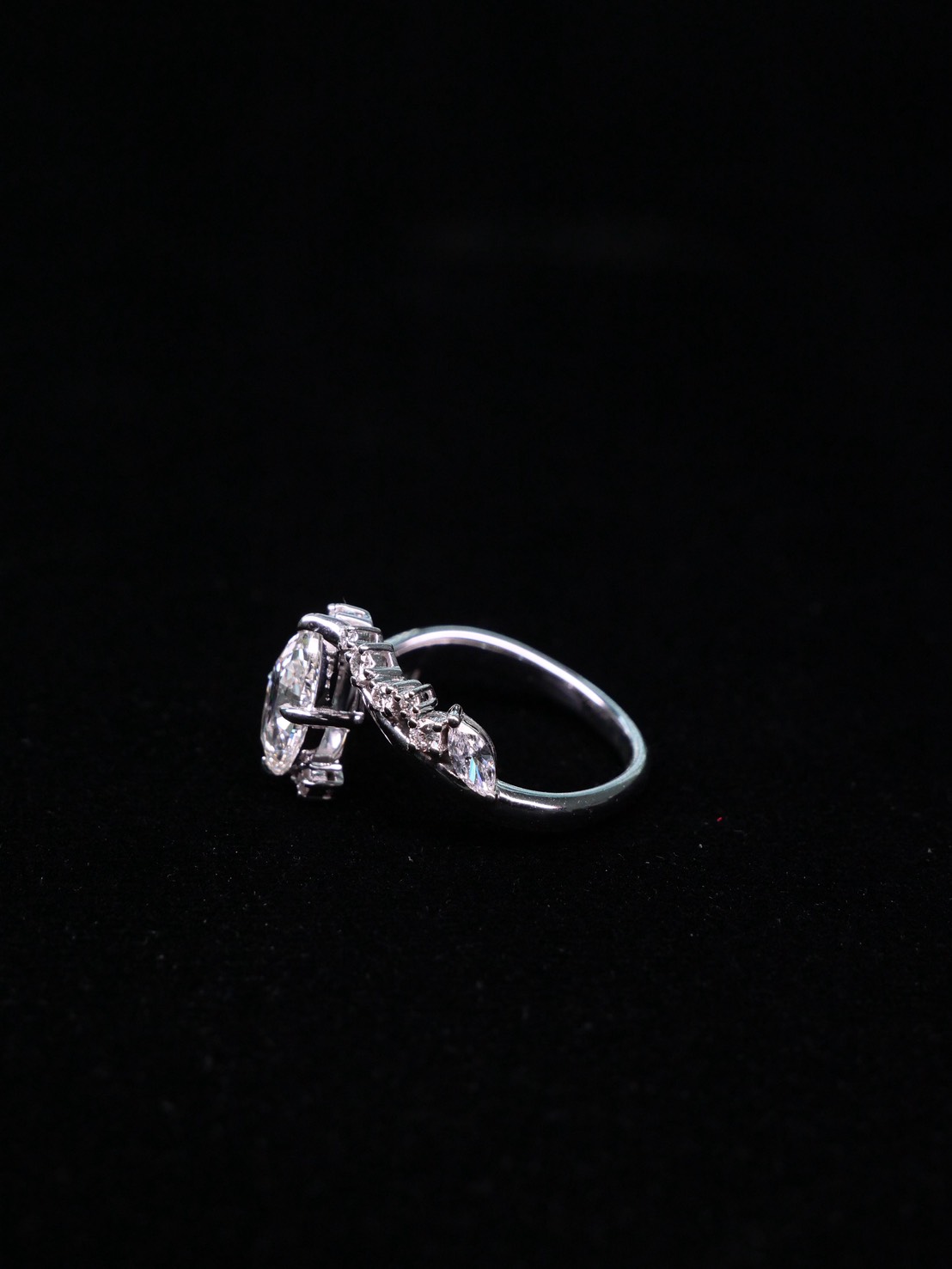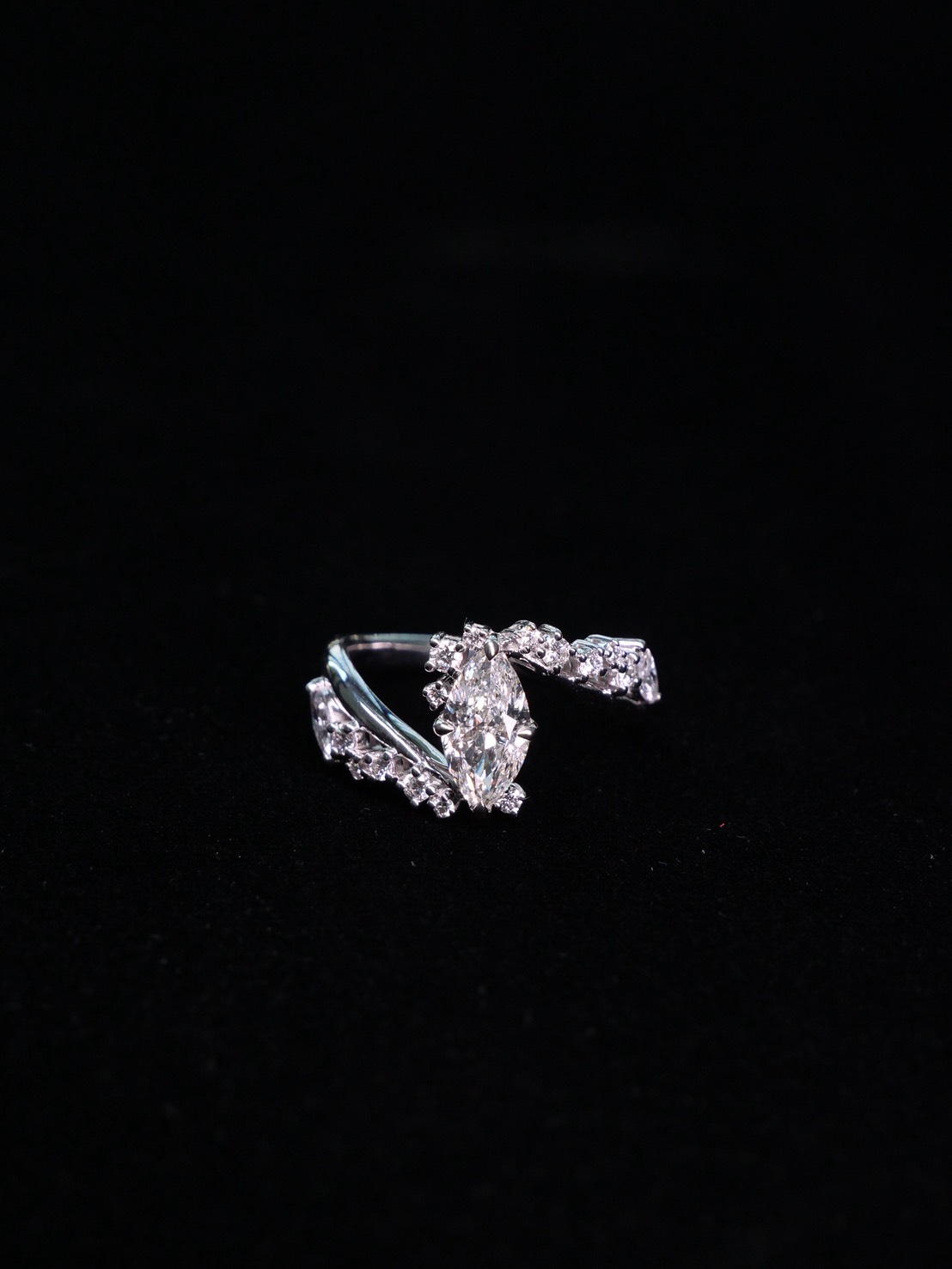 แหวนเพชร Marquise 1.01 ct H VVS1 1VG1G N HRD 220000005291 Round 14/0.20ct Marquise 2/0.19ct White gold 18 k. 3.94 g
