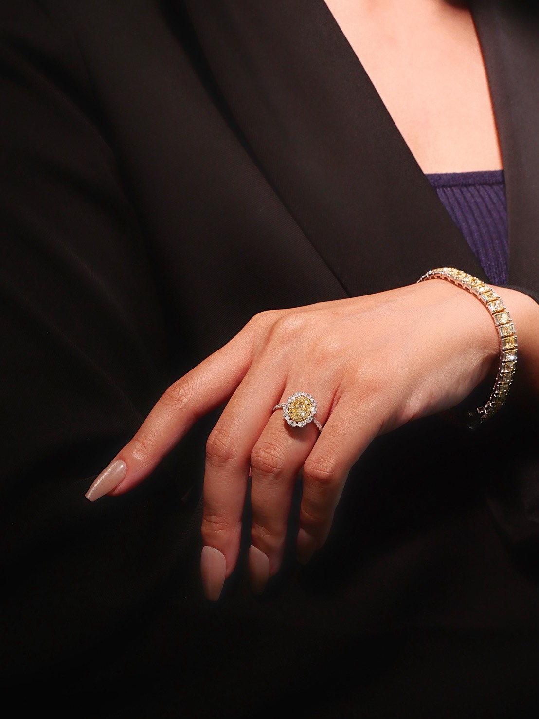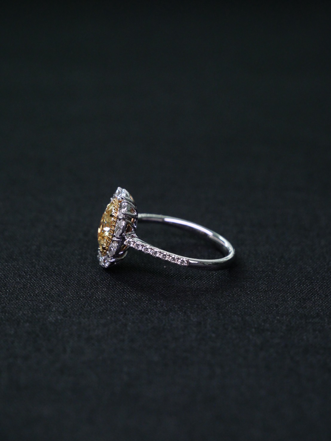 แหวนเพชร Oval 1.35 ct ความสะอาด Fancy Yellow ความสะอาด VVS VS Round 30 pcs 0.03 ct ความสะอาด Fancy Yellow RD 14 pcs 0.14 ct สี E Oval 4 pcs 0.18 ct สี E Marquise 6 pcs 0.31 ct สี E GIL