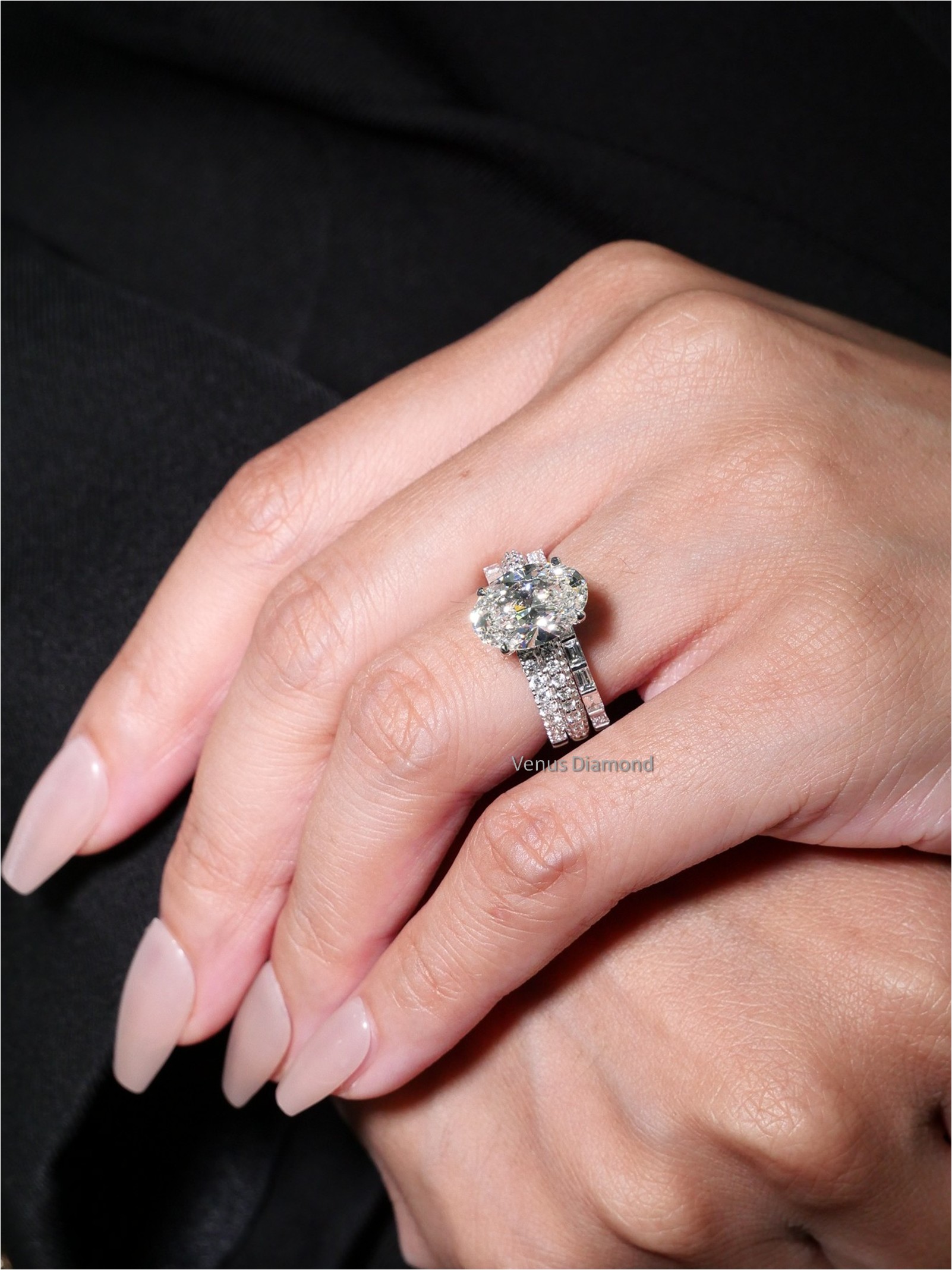 แหวนเพชร Oval 3.01 ct สี I ความสะอาด VVS2 2X N HRD 240000169586 Jacket Round 74 pcs 0.85 ct Baguette 10 pcs 0.47 ct white gold 18k. 7.70 g.