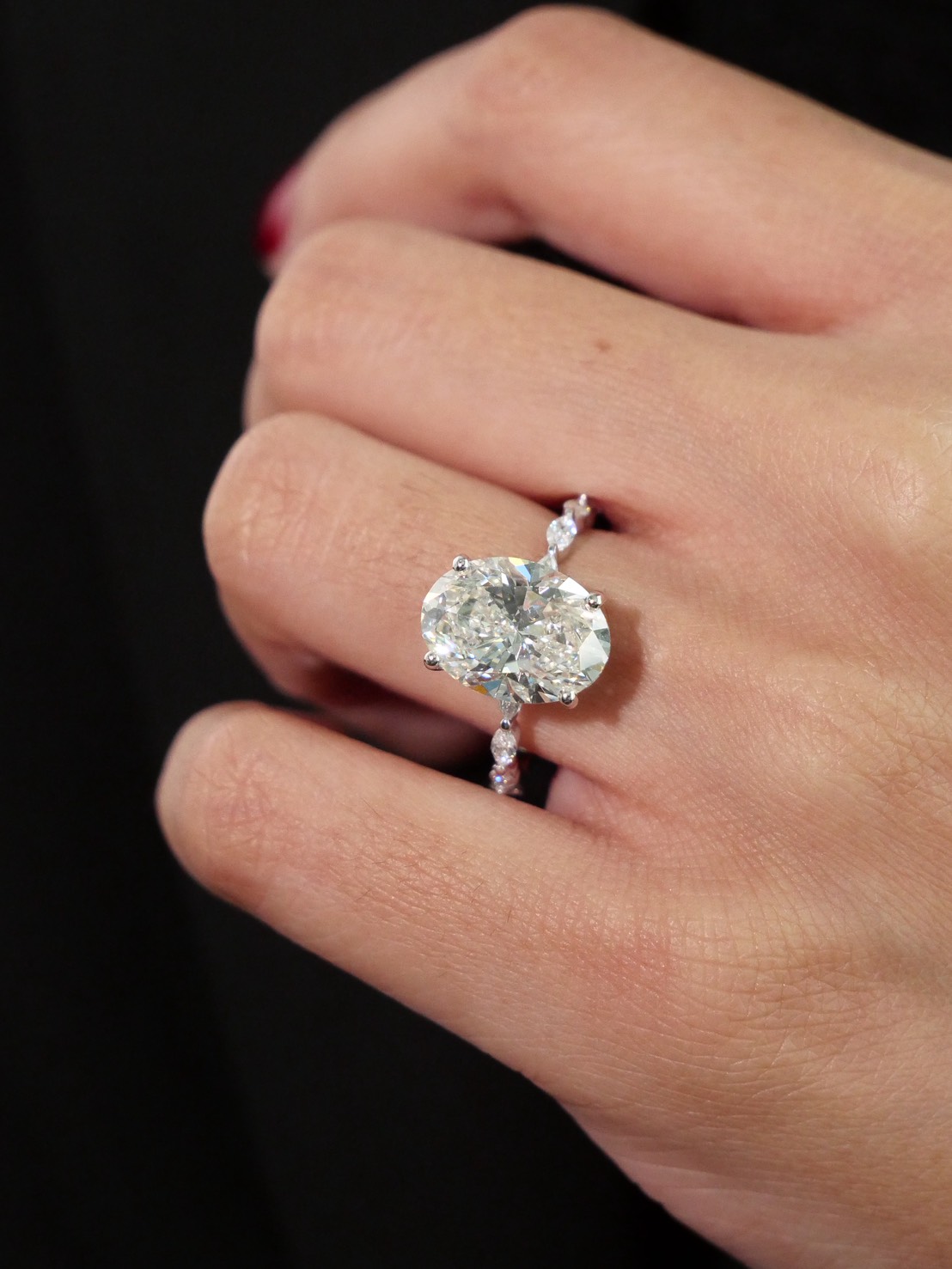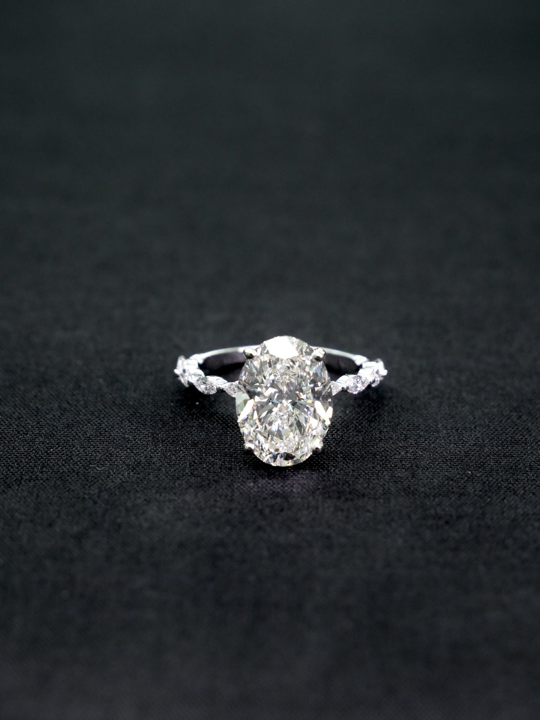 แหวนเพชร Oval 5.01 กะรัต เพชรขาวน้ำ 96 สี H เพชรสะอาดมาก VS1