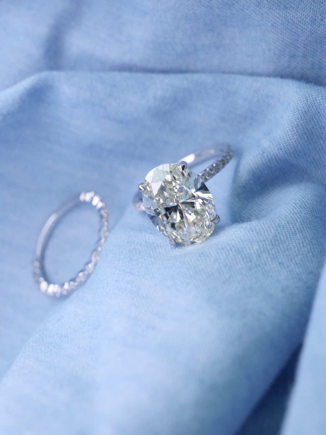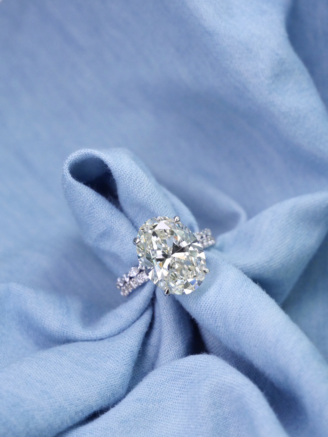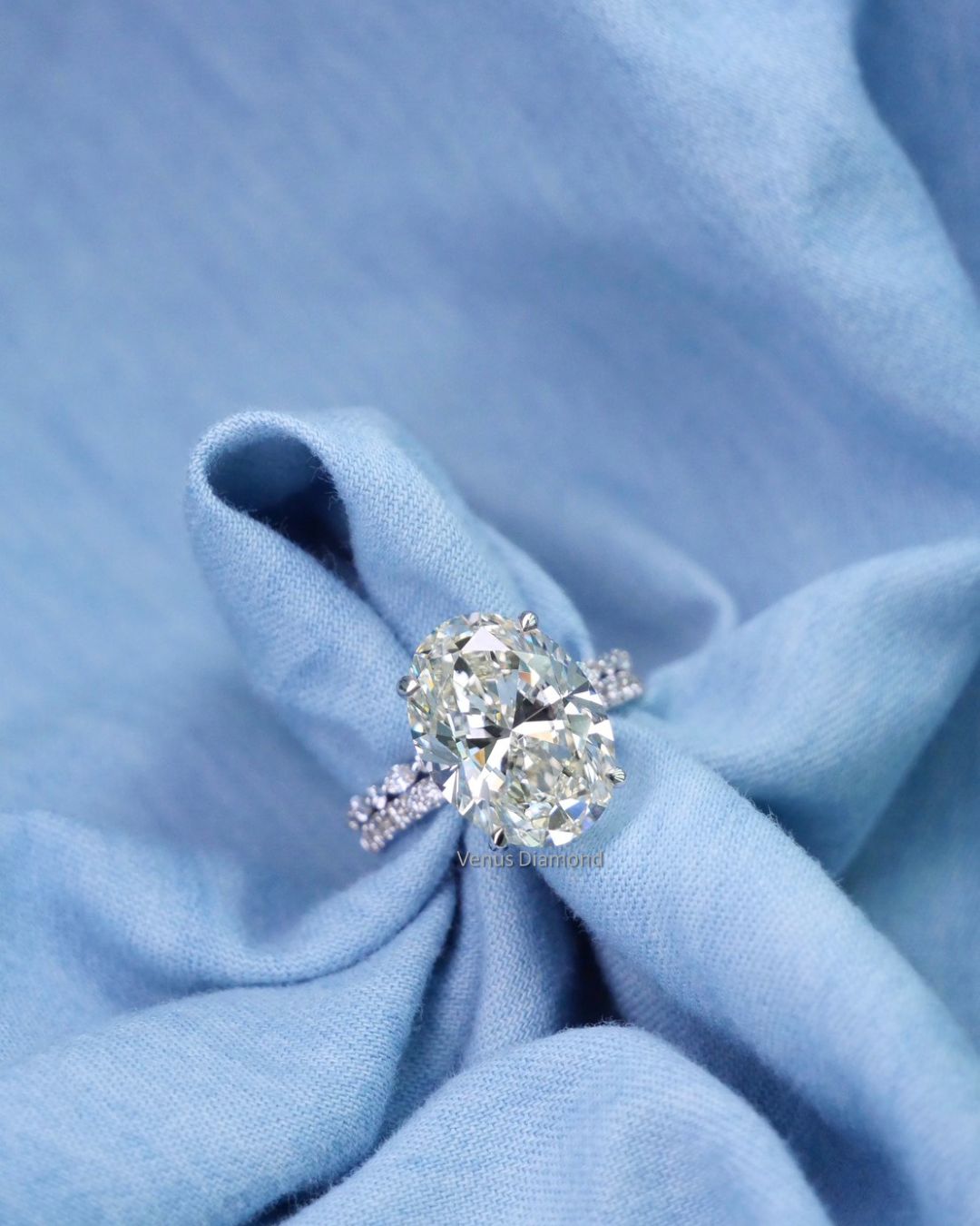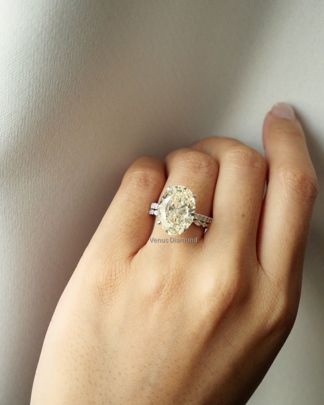 แหวนเพชร Oval 8.01 ct สี H I ความสะอาด VVS VS GIL Diamond 18 pcs 0.25 ct white gold 18K 3.20 g.