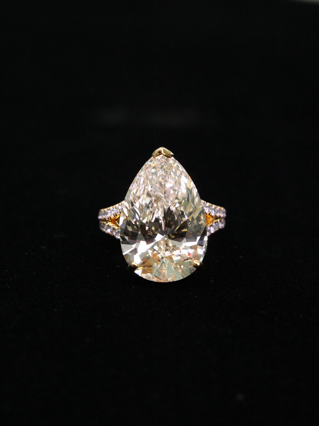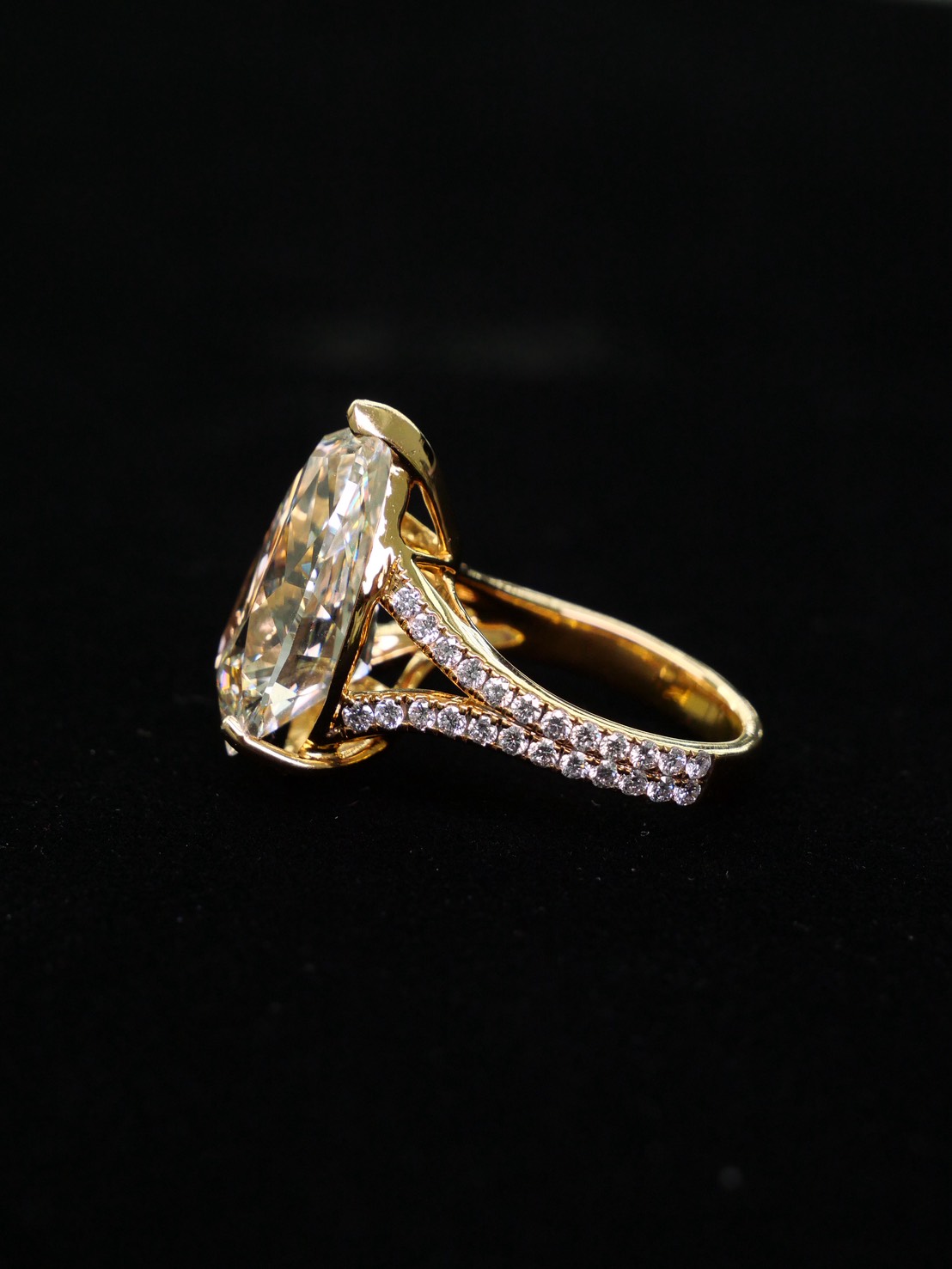 แหวนเพชร Pear 13.05 ct สี Fancy Light Yellow ความสะอาด VVS VS GIL