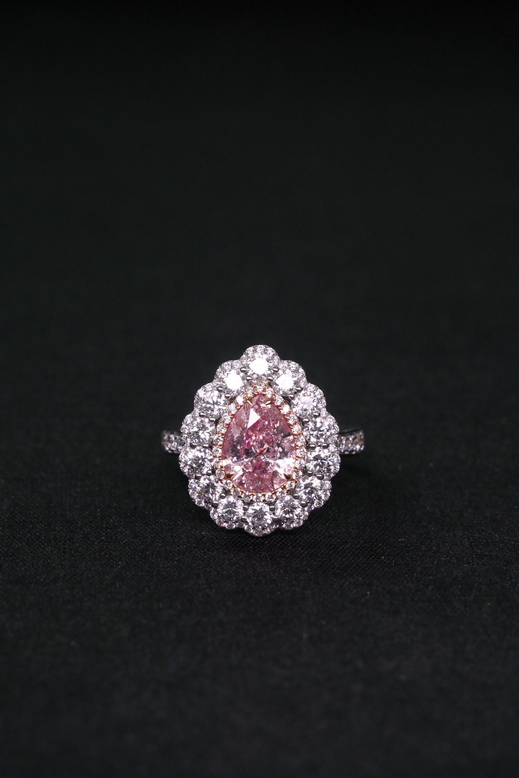 แหวนเพชร Pear 1.46 ct Fancy Orangy Pink ใบเซอร์ GIA