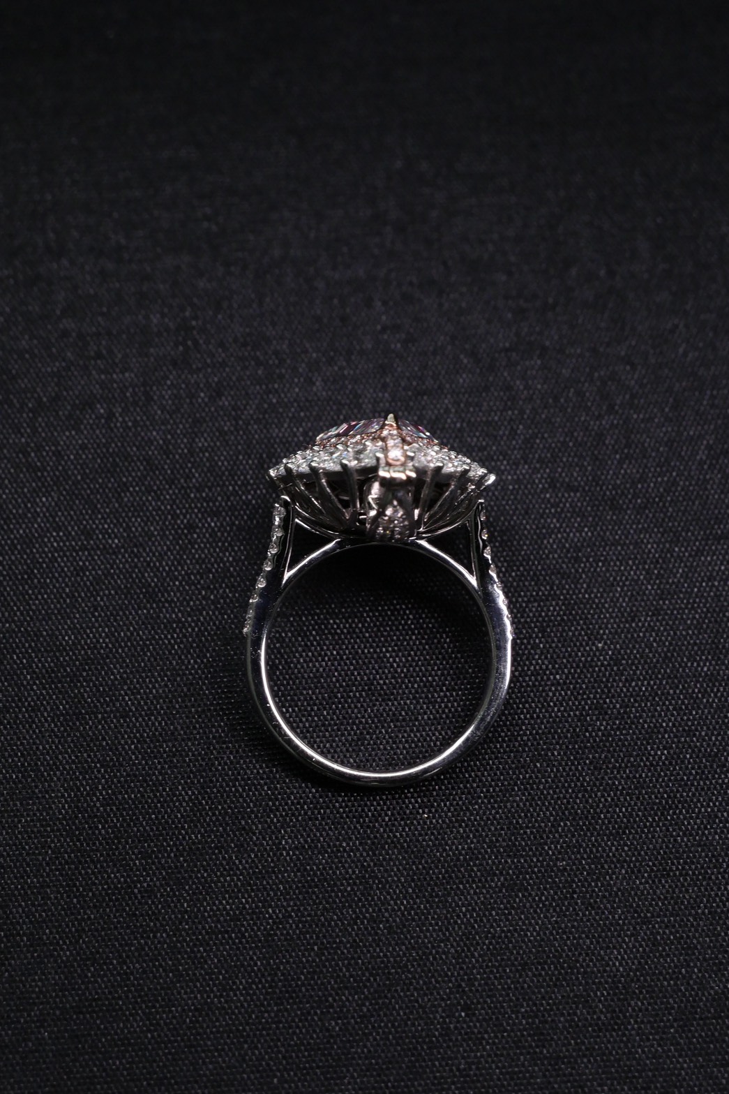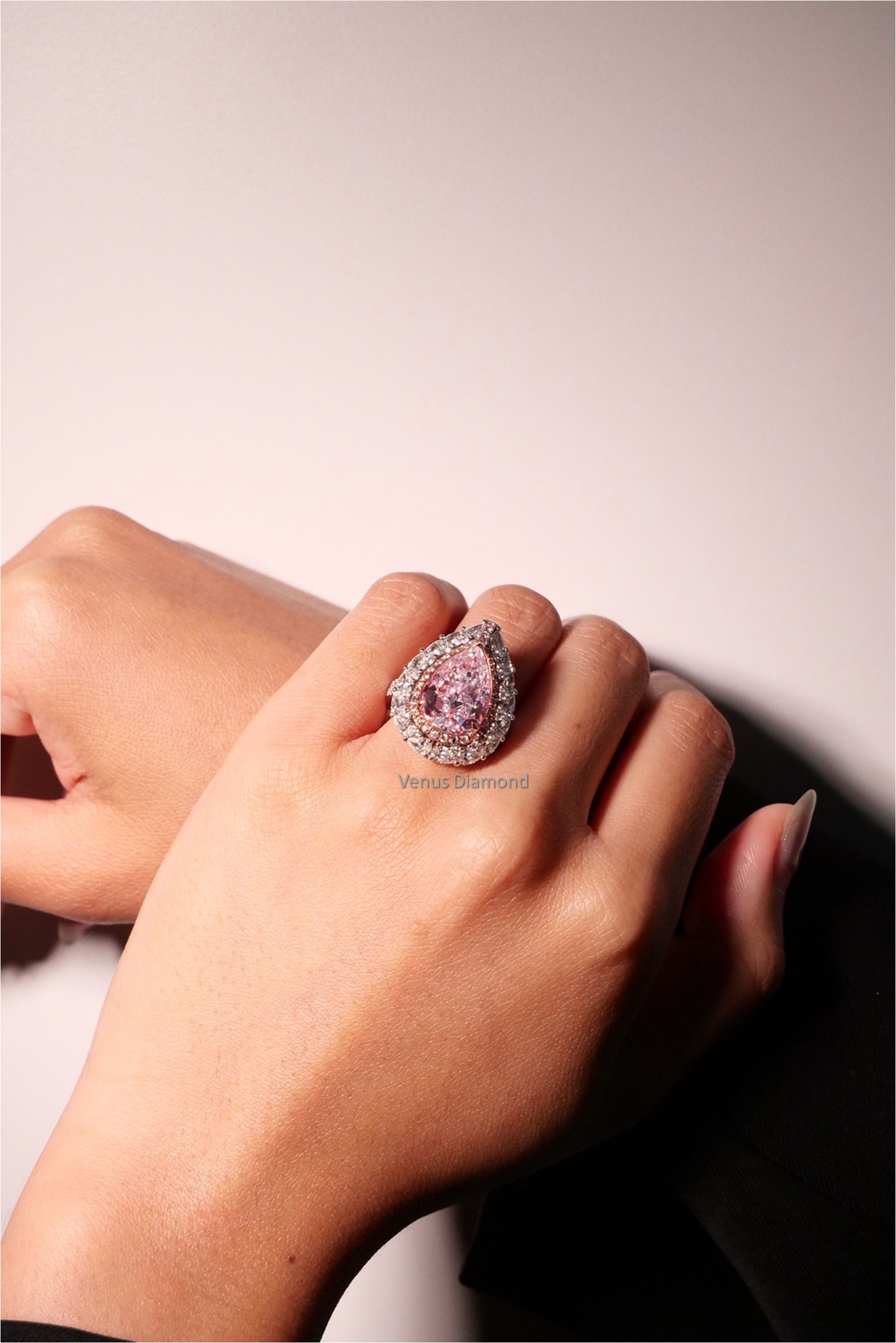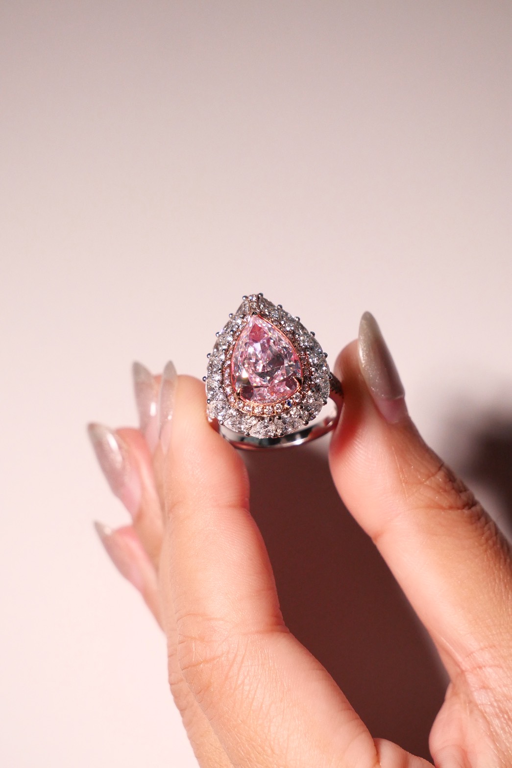 แหวนเพชร Pear 4.49 ct สี Faint Pink ความสะอาด VVS1 1VG1G F ใบเซอร์ GIA 6223394810 PEAR 16 pcs 1.64 ct Round 56 pcs 0.49 ct Round Pink 20 pcs 0.20 ct G.9.87g