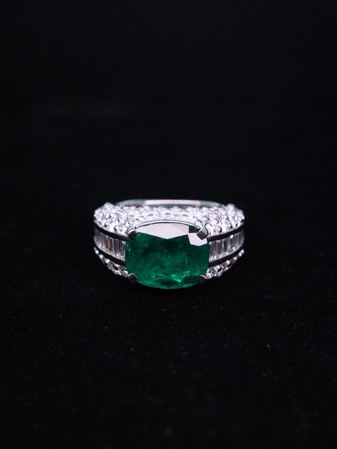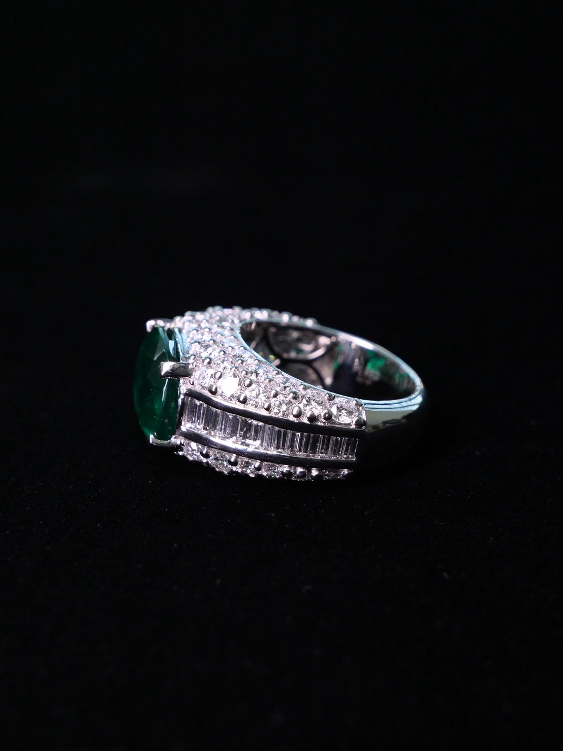 แหวน มรกต 6.69 ct vivid deep green Colombia Natural Emerald Platinum