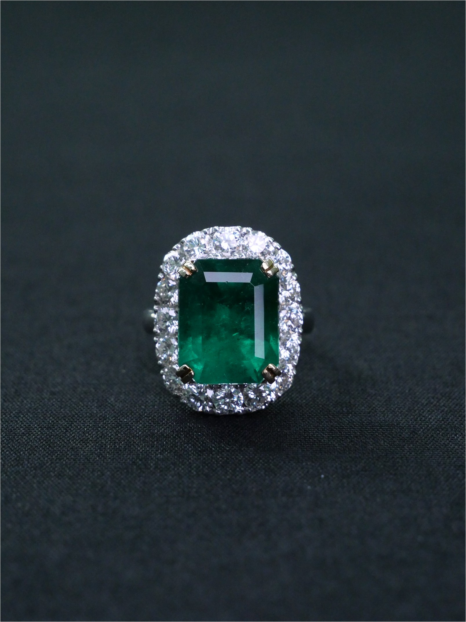 แหวน มรกต 7.81 ct vivid green MUZO Minor GRS